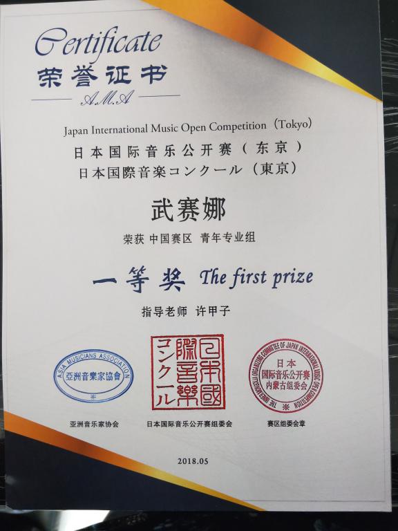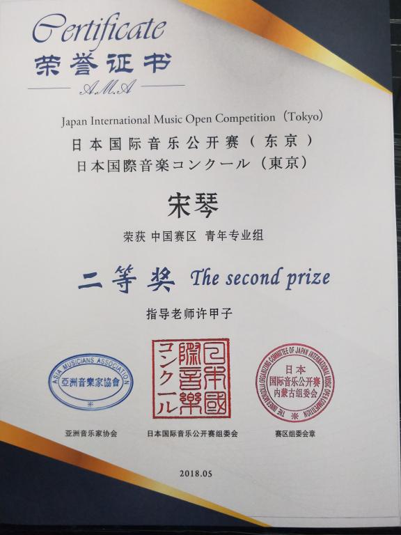 近日,喜訊傳來。由亞洲音樂家協會主辦,日本國際音樂公開賽組委會協辦日本國際音樂公開賽(東京)中國賽區選拔賽內蒙古賽區的比賽5月20日在呼和浩特市舉行,我校藝術學院鋼琴專業武塞娜等四名同學憑借穩定發揮和精彩演奏技藝,受到評委一致認可。武塞娜榮獲日本國際鋼琴大賽中國賽區青年專業組金獎,宋琴,田柯繁,張晗榮獲大賽中國賽區青年專業組二等獎,指導教師許甲子被授予“優秀指導教師”稱號。