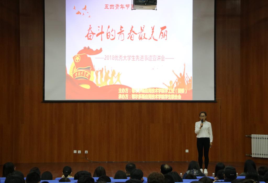 5月10日下午,由學工處(團委)主辦的五四青年節系列活動“奮斗的青春最美麗”優秀大學生先進事跡報告會在二期報告廳舉行。校領導張荷亮、學工處主任(團委書記)劉靜萍和醫學院學工處主任李智軍出席,500余名學生參加。