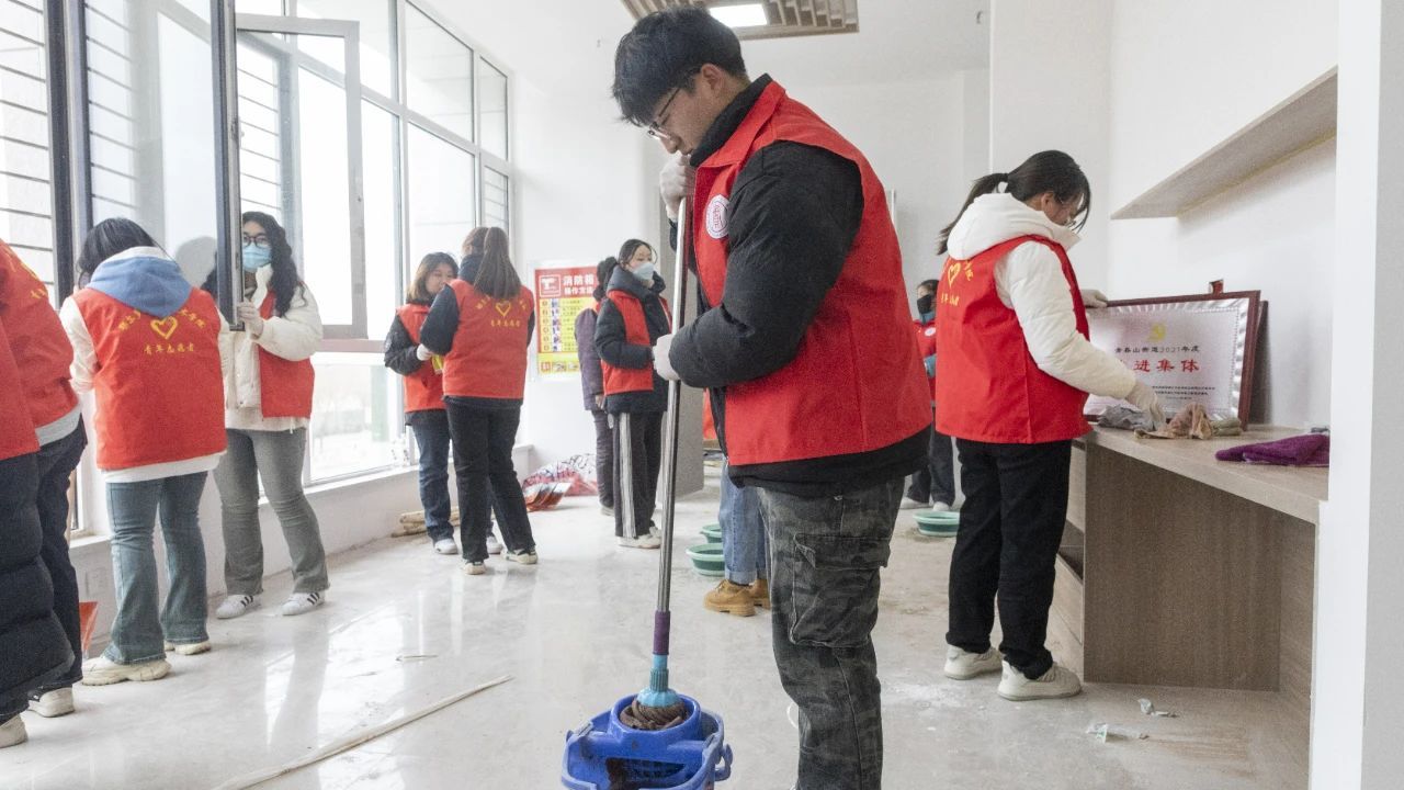 康巴什區青春山街道恩和社區新裝修的社區服務中心即將投入使用,為了盡快更好地服務社區老百姓、強化社區黨建陣地建設,二樓活動陣地急需進行清掃。當得知社區這個需求后,學校黨委學生工作部(處)黨支部及校志愿者協會的青年大學生們,積極行動,深入社區開展衛生大清掃活動。