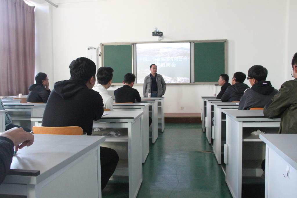 10月11日上午,中國二十冶集團有限公司在土木工程學院二期實驗樓308室舉行2019屆畢業生校園專場招聘會。中國二十冶集團招聘負責人曾旭東,該院相關教師及2015級土木工程專業學生參加了招聘會。