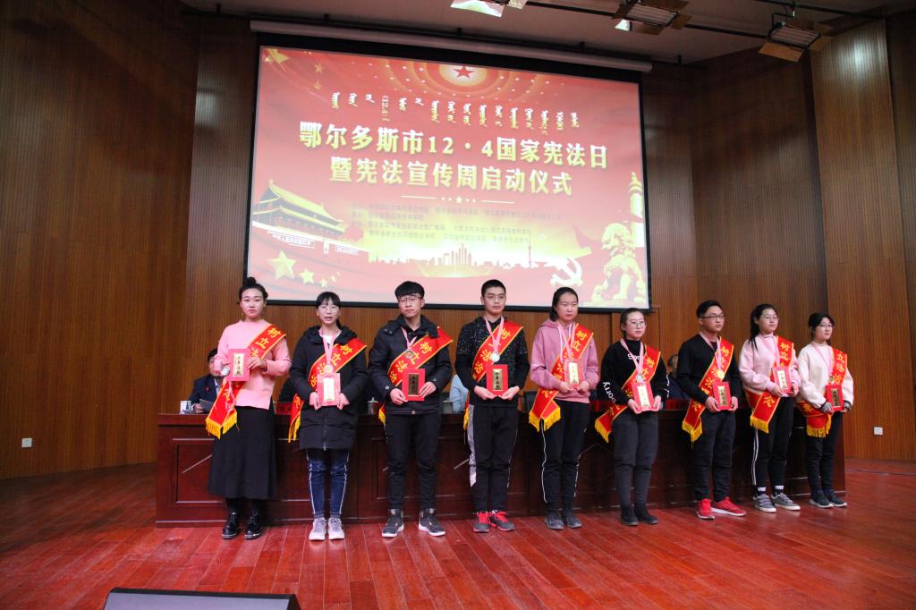 活動上,領(lǐng)導嘉賓向我院和鄂爾多斯市其他三所大學的大學生代表贈送《憲法》文本和《憲法學習50問》,并為我院參加憲法知識競賽活動的部分大學生代表頒獎。