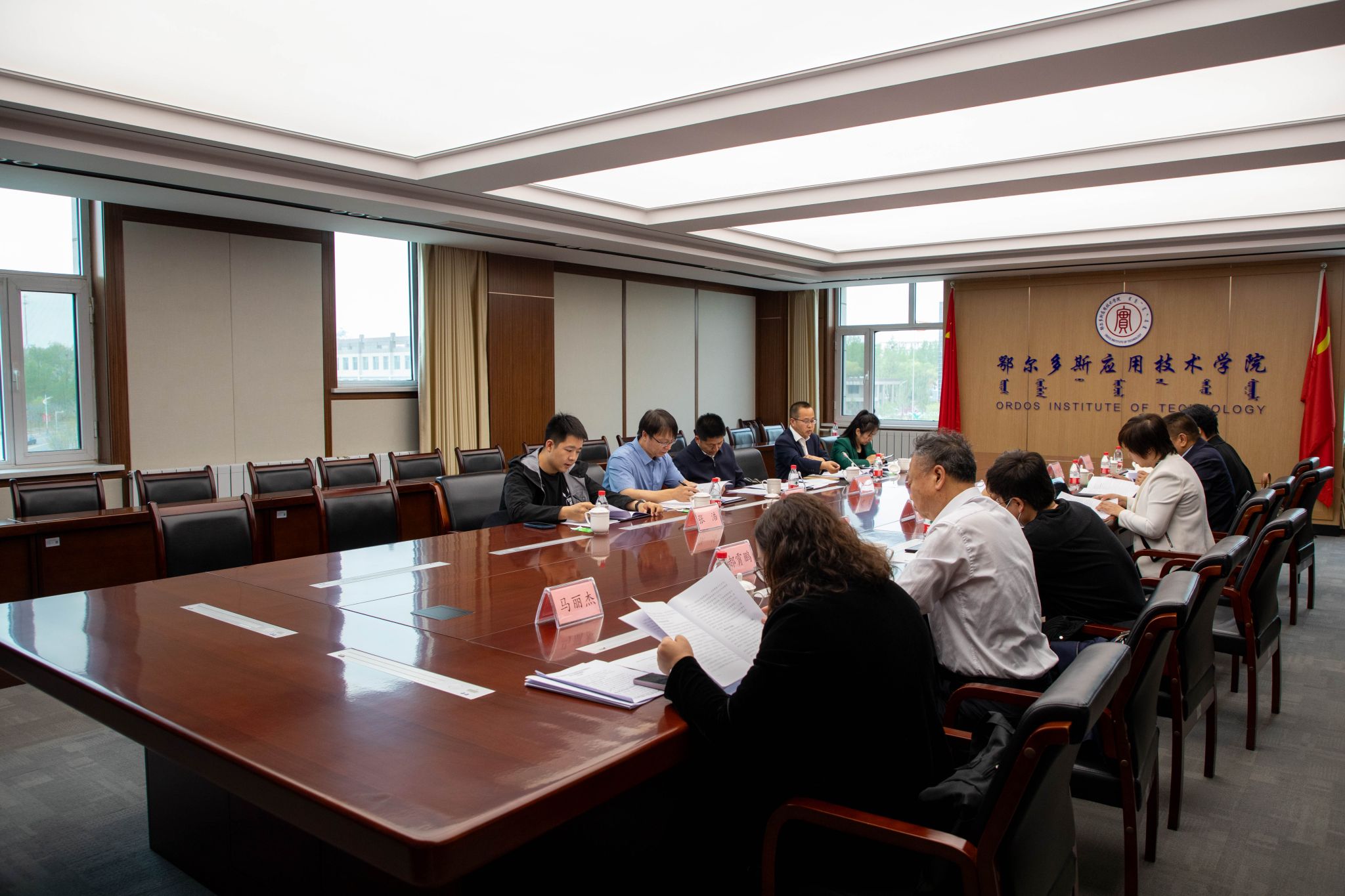 調研結束后,市科技局、內蒙古民族幼兒師范高等專科學校、鄂爾多斯生態環境職業學院、鄂爾多斯職業學院負責人與學校黨委委員、副校長金良共同召開“一本三專”調研座談會。市科技局副局長卜建斌宣講了我市《促進科技成果轉化政策清單》,現場征求了“一本三專”院校對《鄂爾多斯市關于促進科技成果轉化若干政策措施》的意見和建議。內蒙古民族幼兒師范高等專科學校、鄂爾多斯生態環境職業學院、鄂爾多斯職業學院以及我校分管校領導分別發言匯報了學校科技創新和科技成果轉化工作進展、存在問題和意見建議。