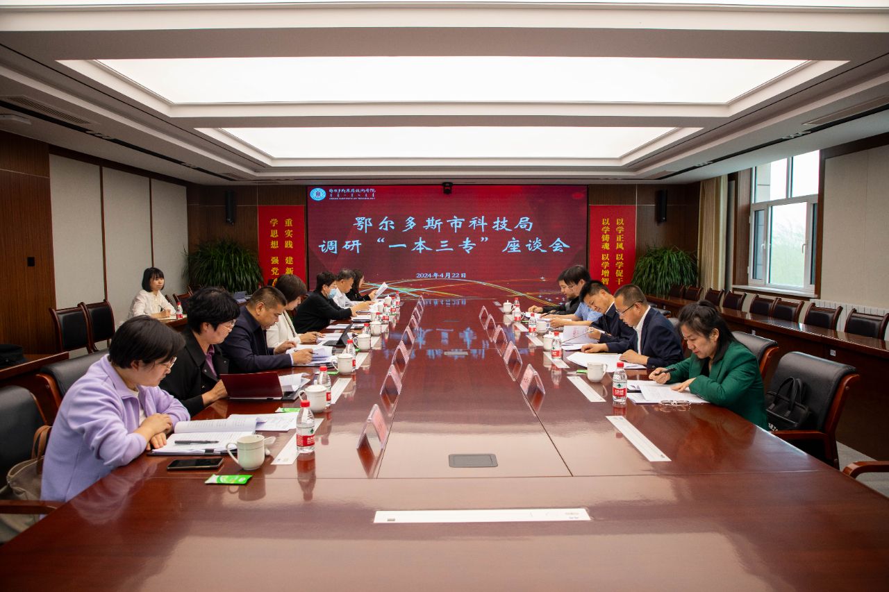 調研結束后,內蒙古民族幼兒師范高等專科學校、鄂爾多斯生態環境職業學院、鄂爾多斯職業學院相關負責人與學校黨委委員、副校長金良共同座談。市科技局副局長卜建斌宣講了我市《促進科技成果轉化政策清單》,現場征求了“一本三專”院校對《鄂爾多斯市關于促進科技成果轉化若干政策措施》的意見和建議。內蒙古民族幼兒師范高等專科學校、鄂爾多斯生態環境職業學院、鄂爾多斯職業學院以及我校分管校領導分別發言匯報了學校科技創新和科技成果轉化工作進展、存在問題和意見建議。