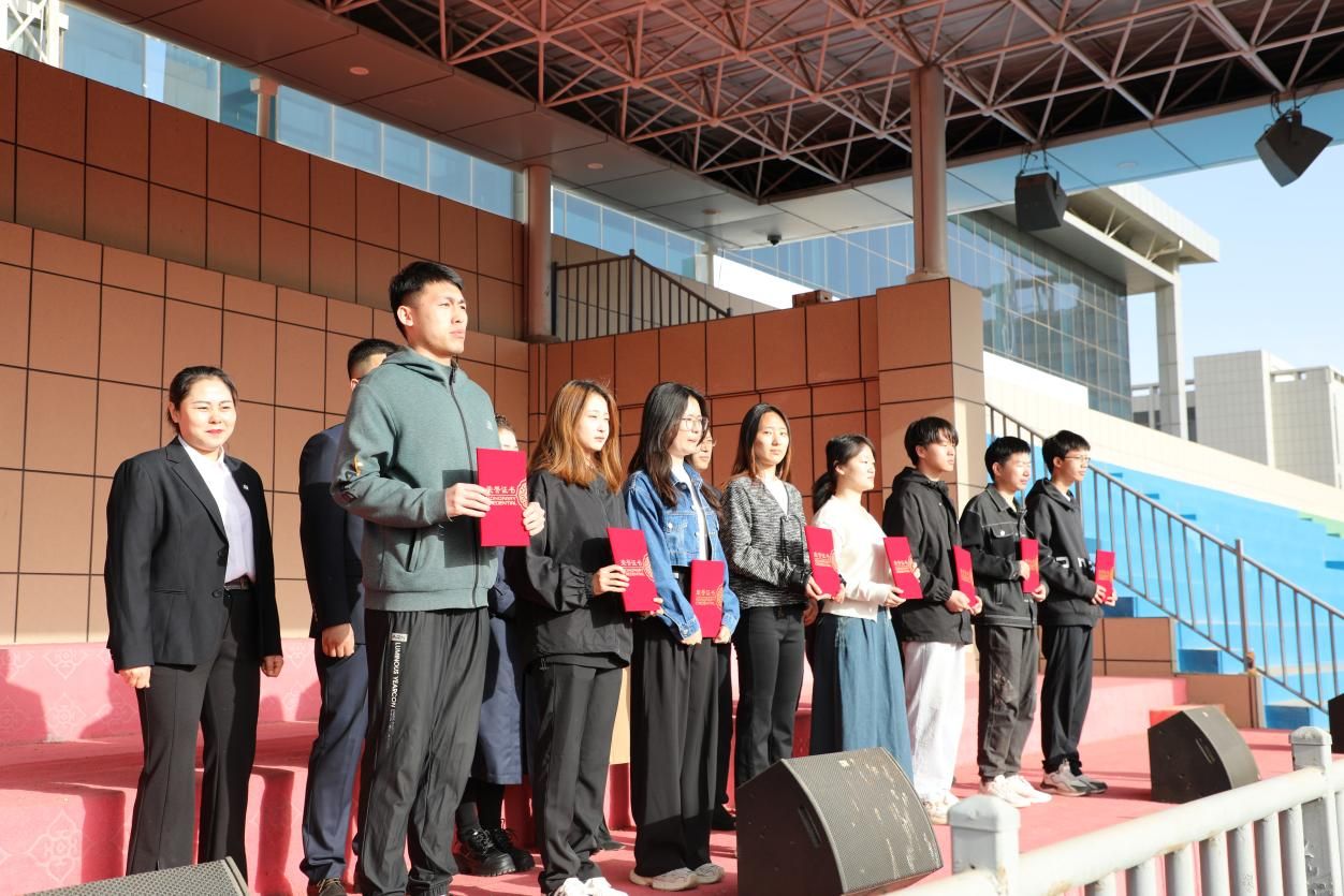 圖書館館長烏吉孟花、圖書館綜合服務(wù)部主任額爾定其其格介紹了今年讀書月主題“再發(fā)現(xiàn)圖書館,共讀現(xiàn)代文明”以及主要活動(dòng)安排,大會(huì)表彰了兩校區(qū)2023下半年“愛讀書、讀好書、善讀書”班集體和“讀者之星”,2021級(jí)中護(hù)1班、2022級(jí)計(jì)算機(jī)科學(xué)與技術(shù)等10個(gè)班級(jí),楊悅、尹霄等20名同學(xué)接受表彰。