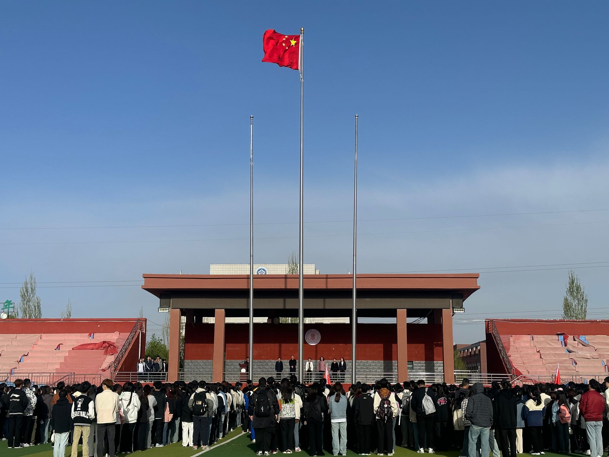 7點(diǎn)30升旗儀式正式開始,國旗護(hù)衛(wèi)隊(duì)護(hù)衛(wèi)五星紅旗入場。國旗飄揚(yáng),激發(fā)愛國力量,國歌雄壯,奏響奮進(jìn)樂章,在場師生肅穆而立、注視國旗、高唱國歌 ,同上愛國“大課”。