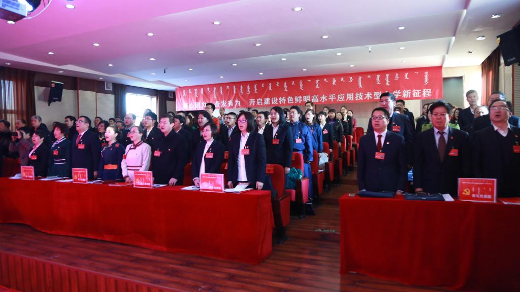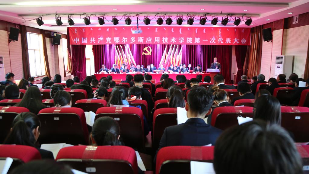 2019年1月22日,中國(guó)共產(chǎn)黨鄂爾多斯應(yīng)用技術(shù)學(xué)院第一次代表大會(huì)在學(xué)院藝術(shù)系報(bào)告廳隆重開(kāi)幕。報(bào)告廳氣氛莊嚴(yán),主席臺(tái)上方懸掛著蒙漢雙語(yǔ)“中國(guó)共產(chǎn)黨鄂爾多斯應(yīng)用技術(shù)學(xué)院第一次代表大會(huì)”條幅,鮮艷的紅旗簇?fù)碇鹕狞h徽,在燈光的映照下熠熠生輝。這是一次鼓舞人心的大會(huì),振奮精神的大會(huì),105名黨代表齊聚一堂,共商學(xué)院改革發(fā)展大計(jì)。