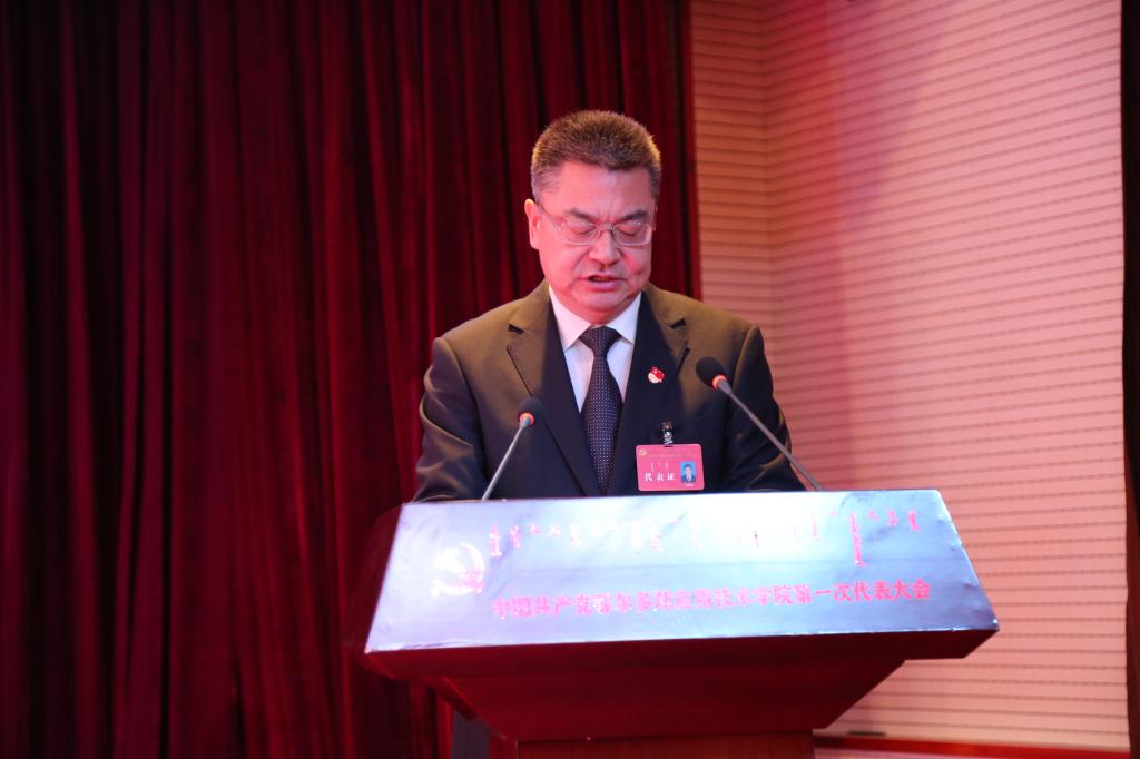 烏東同志代表鄂爾多斯市委、市委組織部向大會(huì)的召開(kāi)表示熱烈祝賀。他指出,鄂爾多斯應(yīng)用技術(shù)學(xué)院是鄂爾多斯地區(qū)唯一的一所本科院校,也是自治區(qū)唯一以“應(yīng)用技術(shù)”命名的本科高校。在學(xué)院的改革發(fā)展過(guò)程中,學(xué)院黨委團(tuán)結(jié)帶領(lǐng)廣大黨員干部和師生員工員工高舉習(xí)近平新時(shí)代中國(guó)特色社會(huì)主義思想偉大旗幟,深入學(xué)習(xí)貫徹黨的十八大、十九大精神,全面貫徹黨的教育方針,持續(xù)推進(jìn)內(nèi)涵建設(shè),辦學(xué)實(shí)力顯著增強(qiáng),綜合水平不斷提升,為把學(xué)院建設(shè)成為國(guó)內(nèi)一流應(yīng)用技術(shù)型大學(xué)奠定了堅(jiān)實(shí)的基礎(chǔ)。
