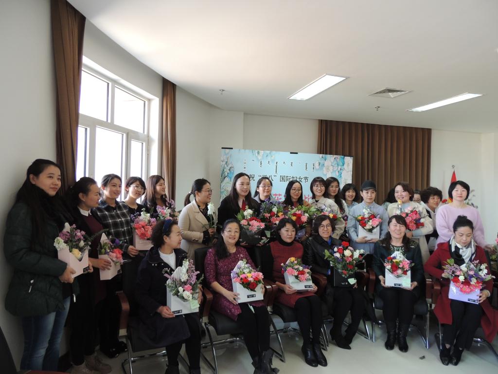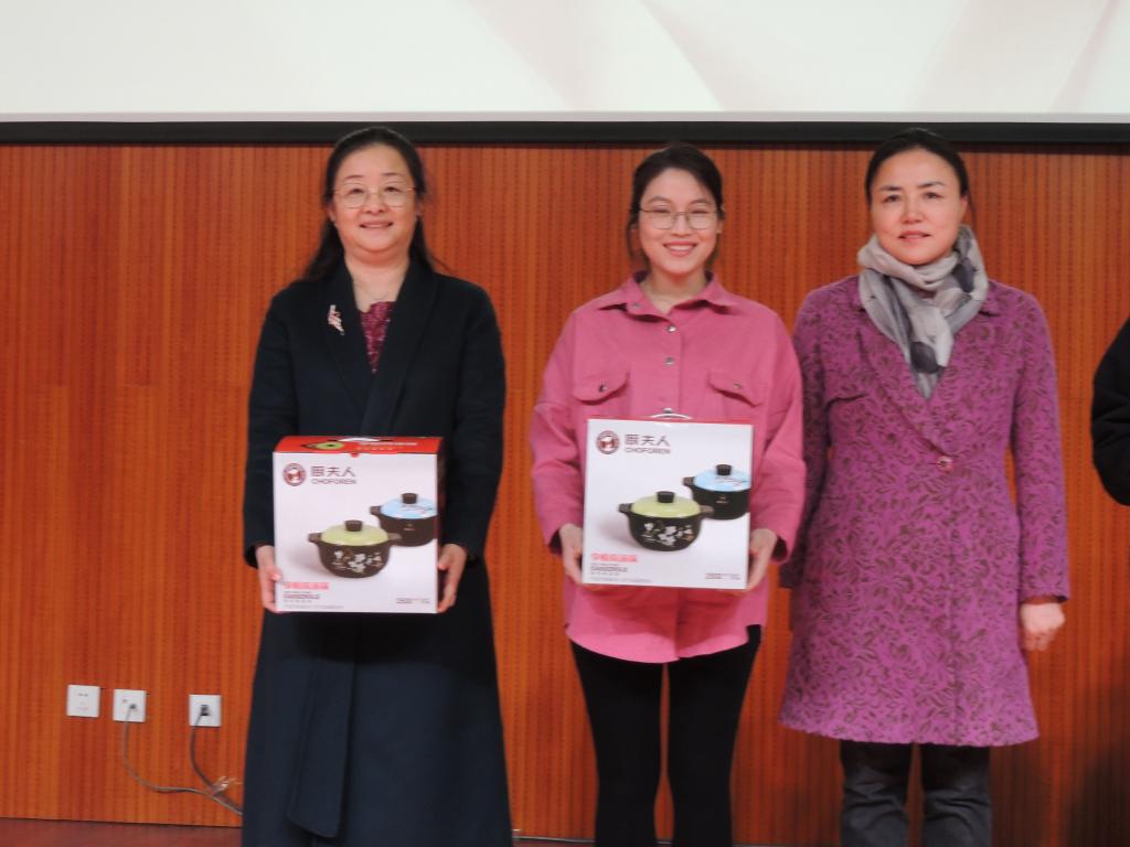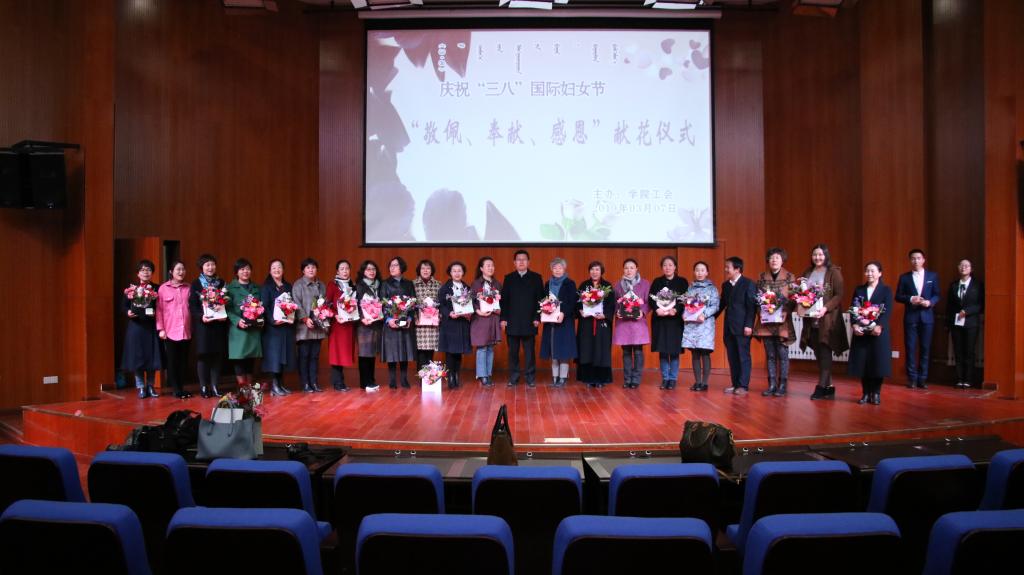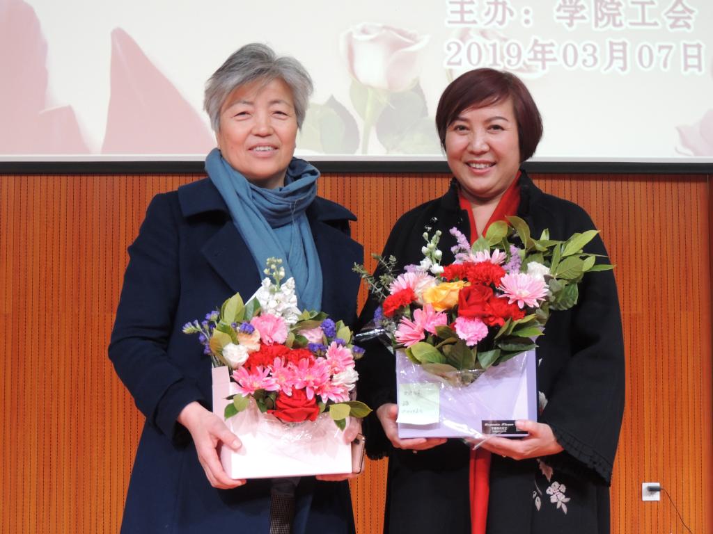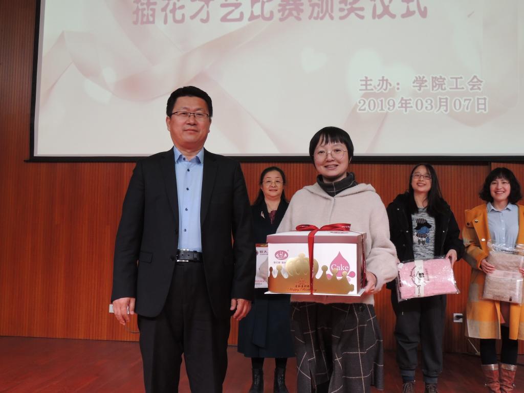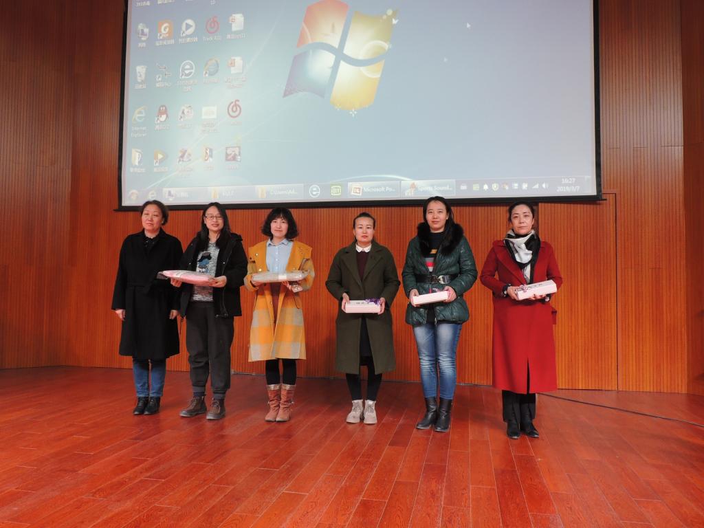 講座結(jié)束后,舉行了“插花才藝比賽”的頒獎儀式。數(shù)學(xué)與計算機(jī)系張曉嬌榮獲一等獎;馬克思主義教學(xué)部高寧、團(tuán)委李艷萍榮獲二等獎;機(jī)械與交通工程系劉小艷、張宇平、圖書館額爾定其其格榮獲三等獎。段美煜、李璟瑤、王彥和王萍4名老師獲最佳創(chuàng)意獎;喬明英、戚樂和薩仁圖娜拉3名老師獲最佳調(diào)色獎。秦聞蘋副書記及在場部門負(fù)責(zé)人為獲獎?wù)哳C獎。頒獎儀式結(jié)束后,舉行了“敬佩、奉獻(xiàn)、感恩”主題的獻(xiàn)花儀式,年輕教師們將她們精心制作的插花作品獻(xiàn)給了老教師,表達(dá)了她們對老教師的仰慕敬佩之情。整個慶祝活動在歡聲笑語中圓滿結(jié)束。