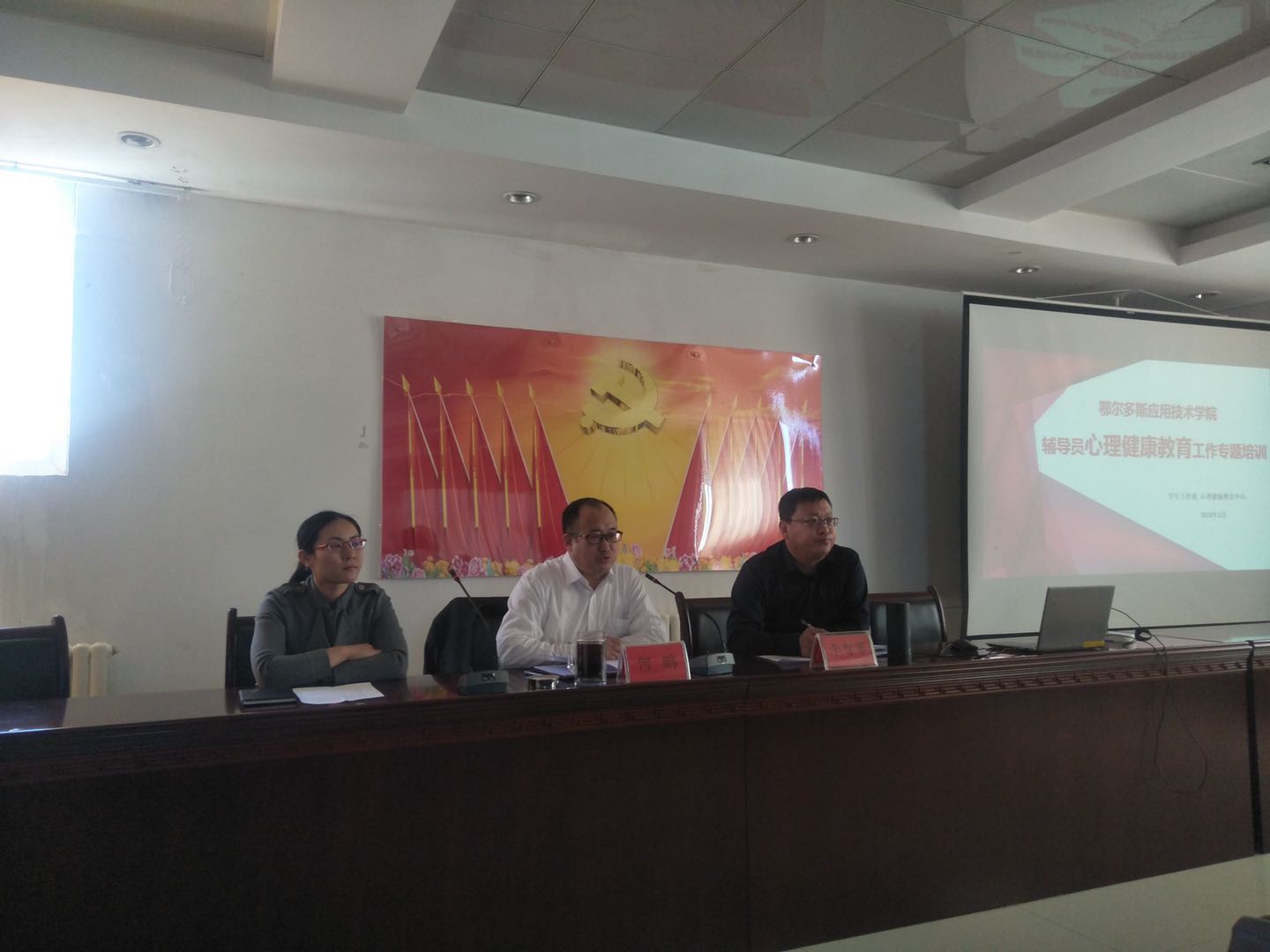 為提高我院心理健康教育工作水平,提升輔導員對學生心理健康問題的研判和干預能力,3月21日下午,我院2019年輔導員心理健康教育工作專題培訓班的開班儀式在康巴什校區行政樓501會議室舉行,學院副院長何鵬出席,學生工作處、數學與計算機工程系、化學工程系、醫學系負責人、學生工作處心理健康教育中心和各系學工辦主任(團委書記)及全體輔導員、班主任共30余人參加了此次培訓。