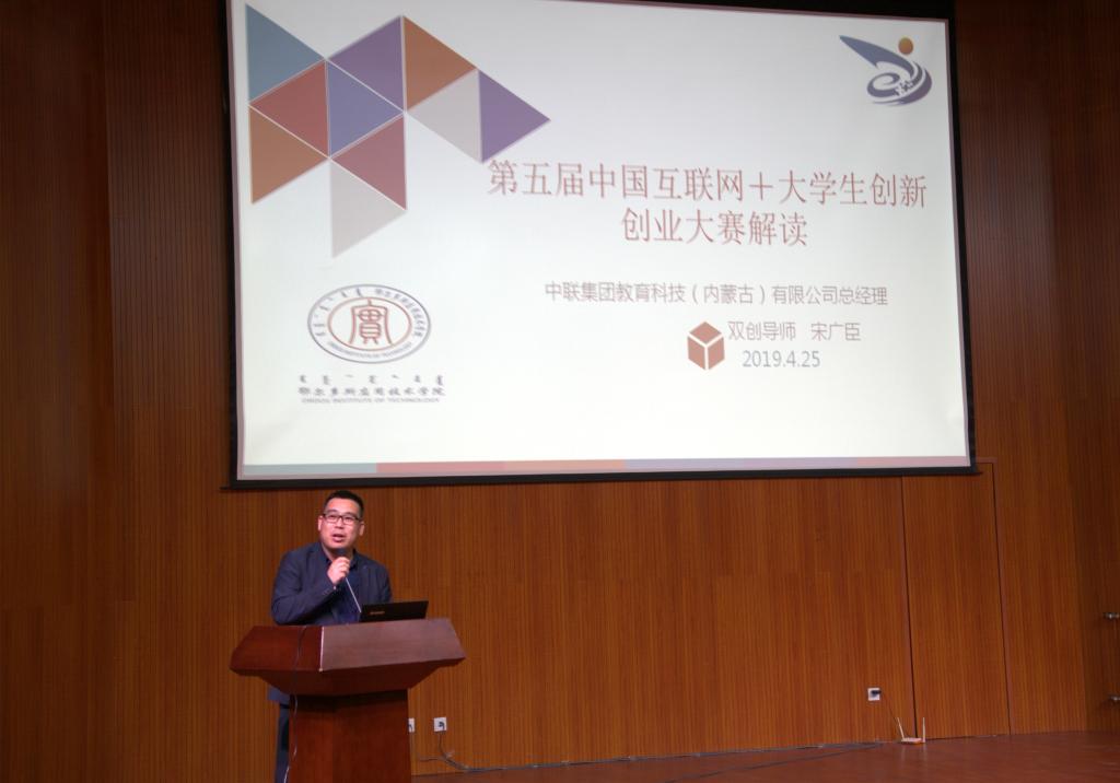 最后,內(nèi)蒙古“互聯(lián)網(wǎng)+”大賽評委、項目指導(dǎo)教師、中聯(lián)教育總經(jīng)理宋廣臣為師生作了賽事解讀和備賽說明專題培訓(xùn)。
