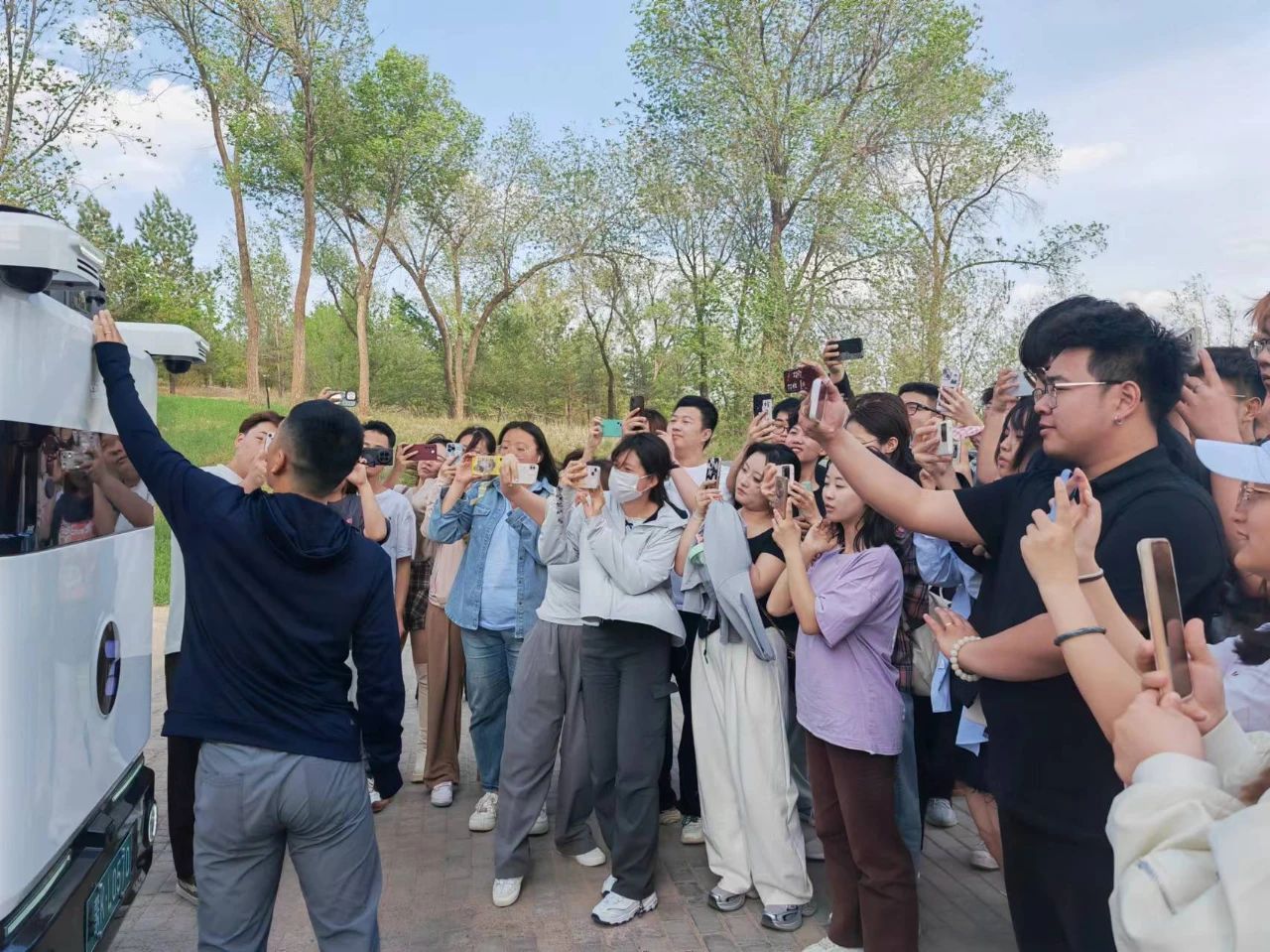 充滿好奇的學生圍著快遞車,問工作人員:“在它的行駛路線上如果遇到無法解決的問題怎么辦?”“無人駕駛快遞車的系統后臺工作人員,會接管操作,避免道路擁堵。”工作人員向學生們介紹了無人車智能調度系統,工作人員在后臺可看到每臺無人車的工作動態、任務次數、電量預警、障礙預警等信息。大家感嘆,有了硬核科技的加持,我校師生可享受更加便捷、智能的快遞服務。