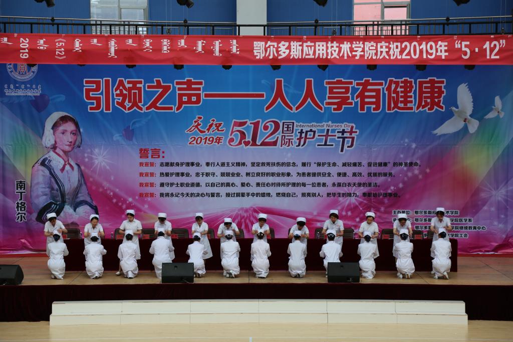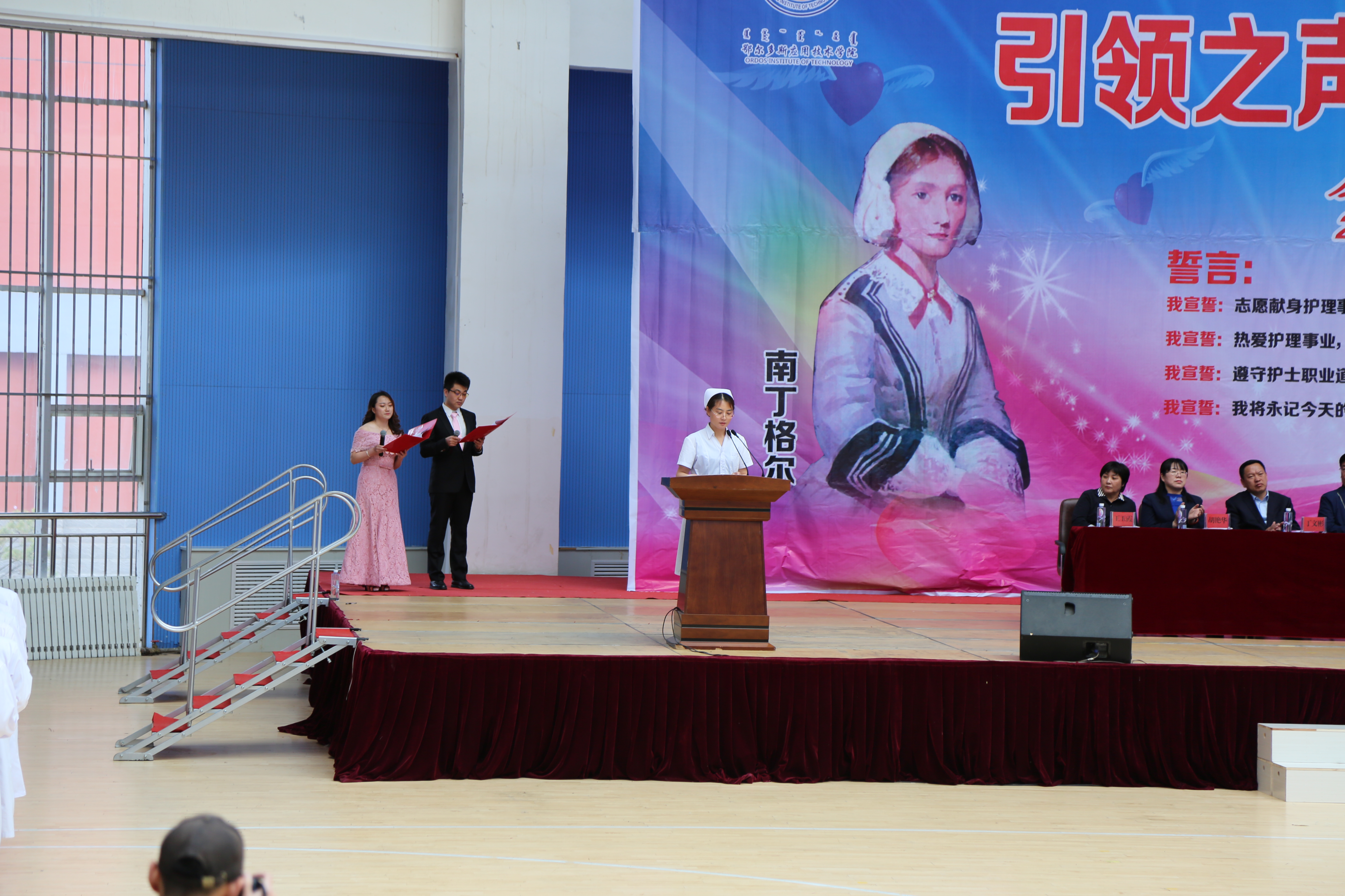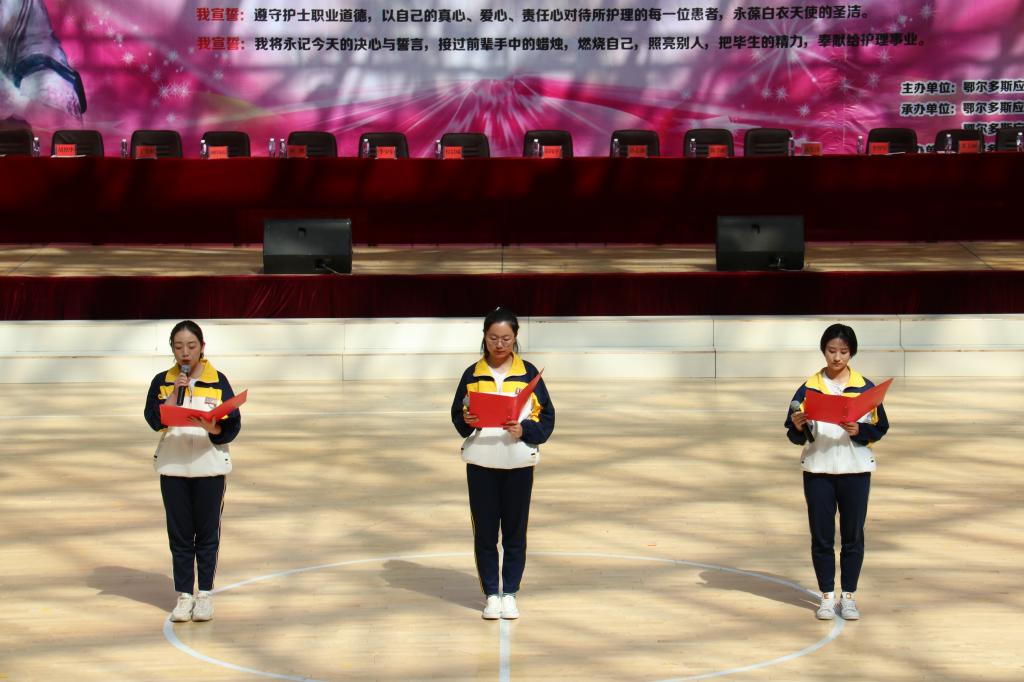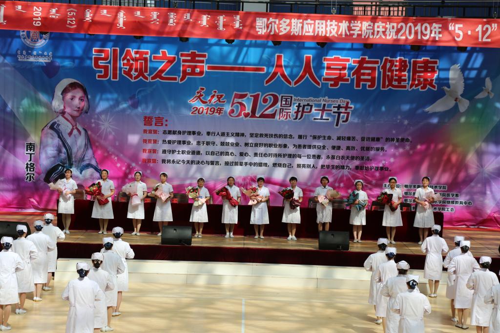 活動首先對在2018年內蒙古自治區(qū)中等職業(yè)學校護理技能大賽、2019年高職院校護理技能大賽中獲獎學生進行了表彰。接下來舉行了莊嚴而神圣的授帽儀式,百名護生單膝著地,由護理前輩為她們戴上圣潔的燕尾帽,點燃象征南丁格爾救死扶傷精神的紅蠟燭,傳遞一份責任與期望。最后進行了文藝表演,同學們呈現出精心準備的節(jié)目共同慶祝節(jié)日。