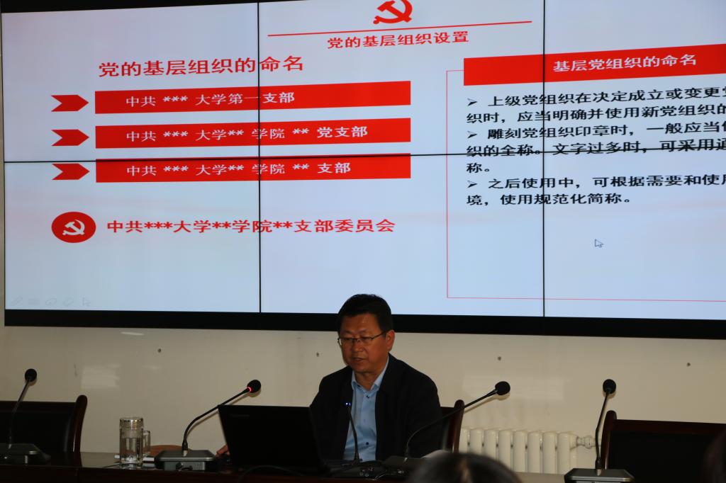 秦書記結合學院建設發展實際,對學院基層組織建設工作進行了詳細的解讀。一是解讀了基層組織設置的條件、類型等內容;二是詳細解讀了發展黨員的細則,并梳理了黨員發展流程,對入黨積極分子階段、發展對象階段、預備黨員階段等每個環節的要求都做了詳細講解;三是針對黨員發展過程中容易出現的問題進行了具體分析。