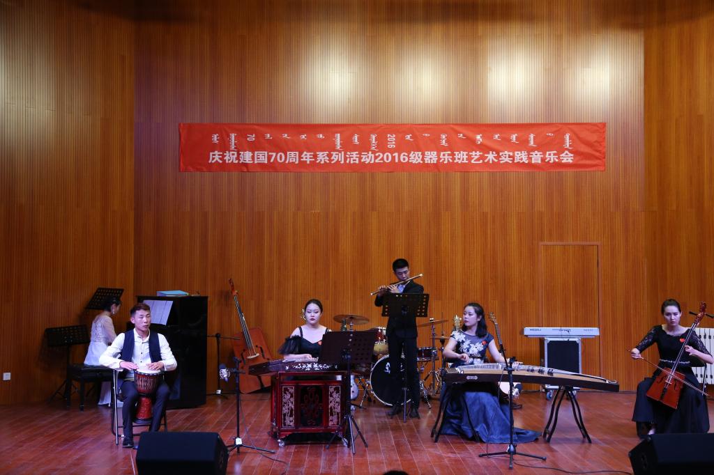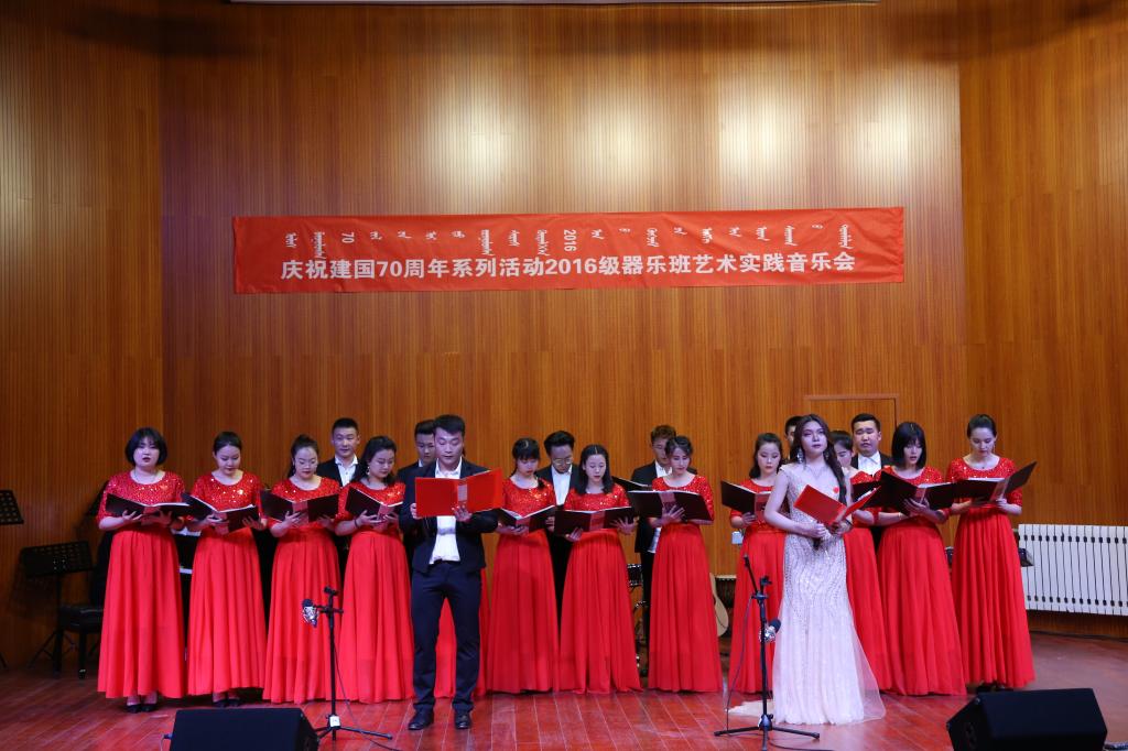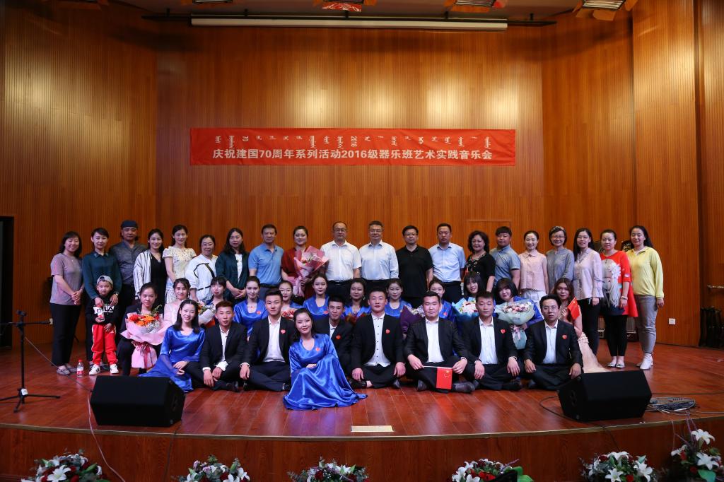 為慶祝中華人民共和國成立70周年,充分展示我院特色學科專業建設成果及藝術系師生的風采,藝術系舉辦“慶祝中華人民共和國成立70周年系列師生音樂會”系列活動。2019年6月3日晚19:00在學院二期報告廳首場音樂會---藝術系2016級器樂班藝術實踐音樂會暨藝術系砥礪之音系列音樂會(一)拉開序幕,學院黨委書記侯晨曦,副院長孫志強、何鵬出席音樂會,藝術系全體師生200多人參加了音樂會。