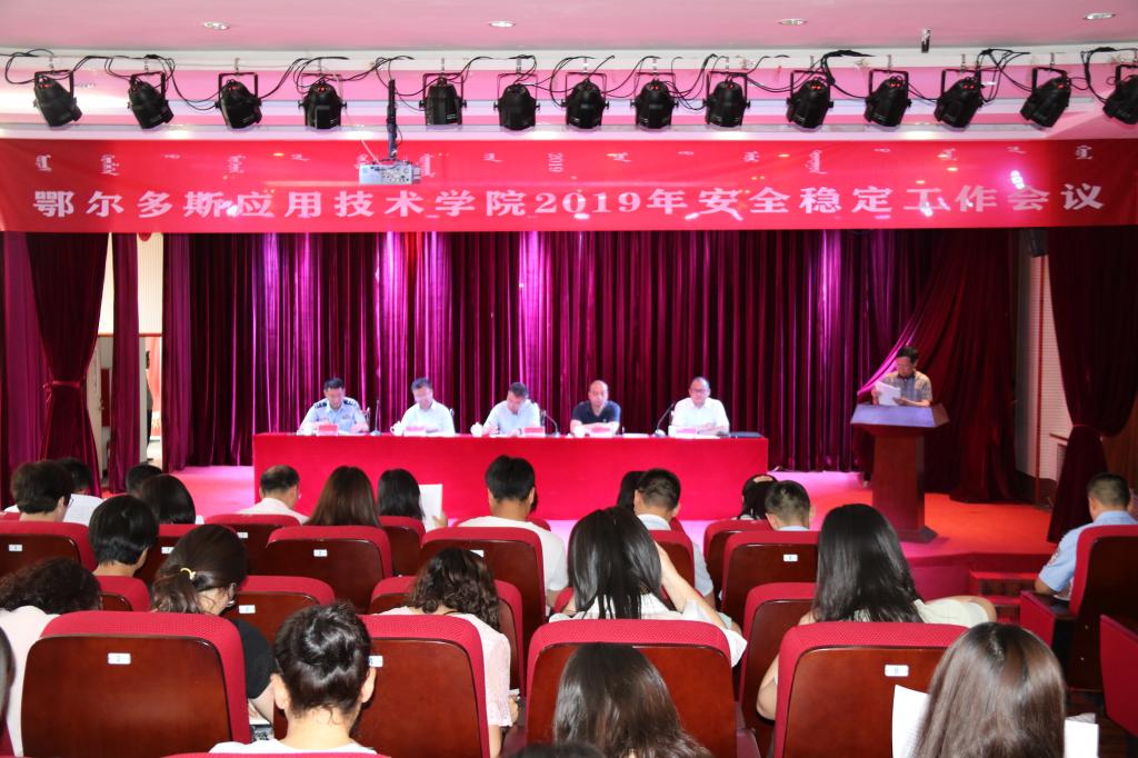 學院副院長何鵬講話強調,全體與會人員要認真貫徹落實會議精神,結合本單位、本部門工作實際,召開安全穩定工作專題會議,研究存在的問題,認真查找風險隱患,把任務和措施落到實處,確保校園安全穩定。會上,保衛處副處長王勇宣讀了自治區教育廳《2019年全區學校安全穩定工作要點》及2019年全區學校安全穩定工作一號、二號預警通知。