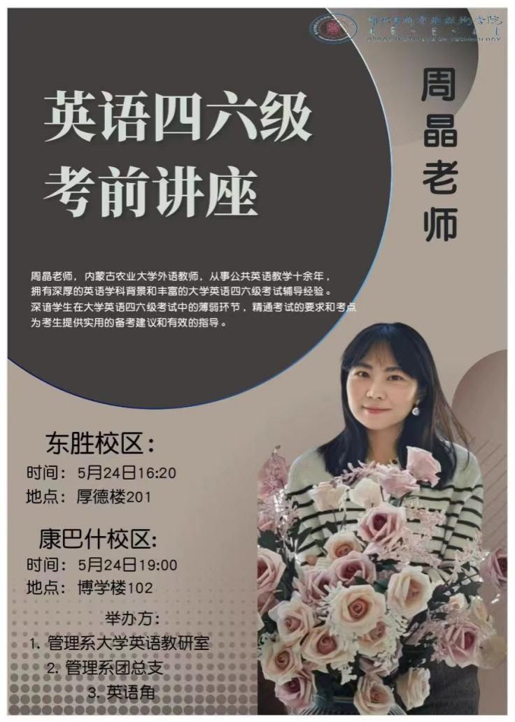 實(shí)用的資料和技巧讓在場的學(xué)生受益匪淺,對即將到來的四六級考試充滿信心。管理系大學(xué)英語教研室將開展更多常態(tài)化活動,提升學(xué)生英語學(xué)習(xí)興趣,營造良好學(xué)習(xí)氛圍,提升全校四六級通過率。