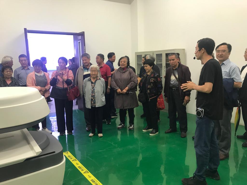 座談會后,學院領導陪同老同志們參觀了各系實驗室并與大家合影留念。