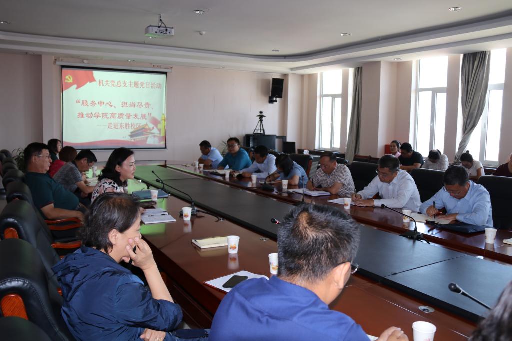 8月30日上午,機關黨總支組織全體黨員走進東勝校區開展“服務中心、擔當盡責,推動學院高質量發展”主題黨日活動。學院黨委書記侯晨曦、紀委書記李少東以普通黨員身份參加。