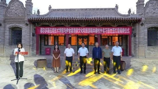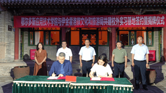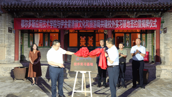 7月1日,學校與伊金霍洛旗文化和旅游局共建校外實習基地簽約暨揭牌儀式在郡王府舉行。學校黨委副書記、校長宮箭,黨委委員、副校長姜鑫,伊金霍洛旗委副書記、旗長喬小軍,旗委常委、旗人民政府副旗長劉曉東出席。旗人民政府副旗長奇紅梅主持。