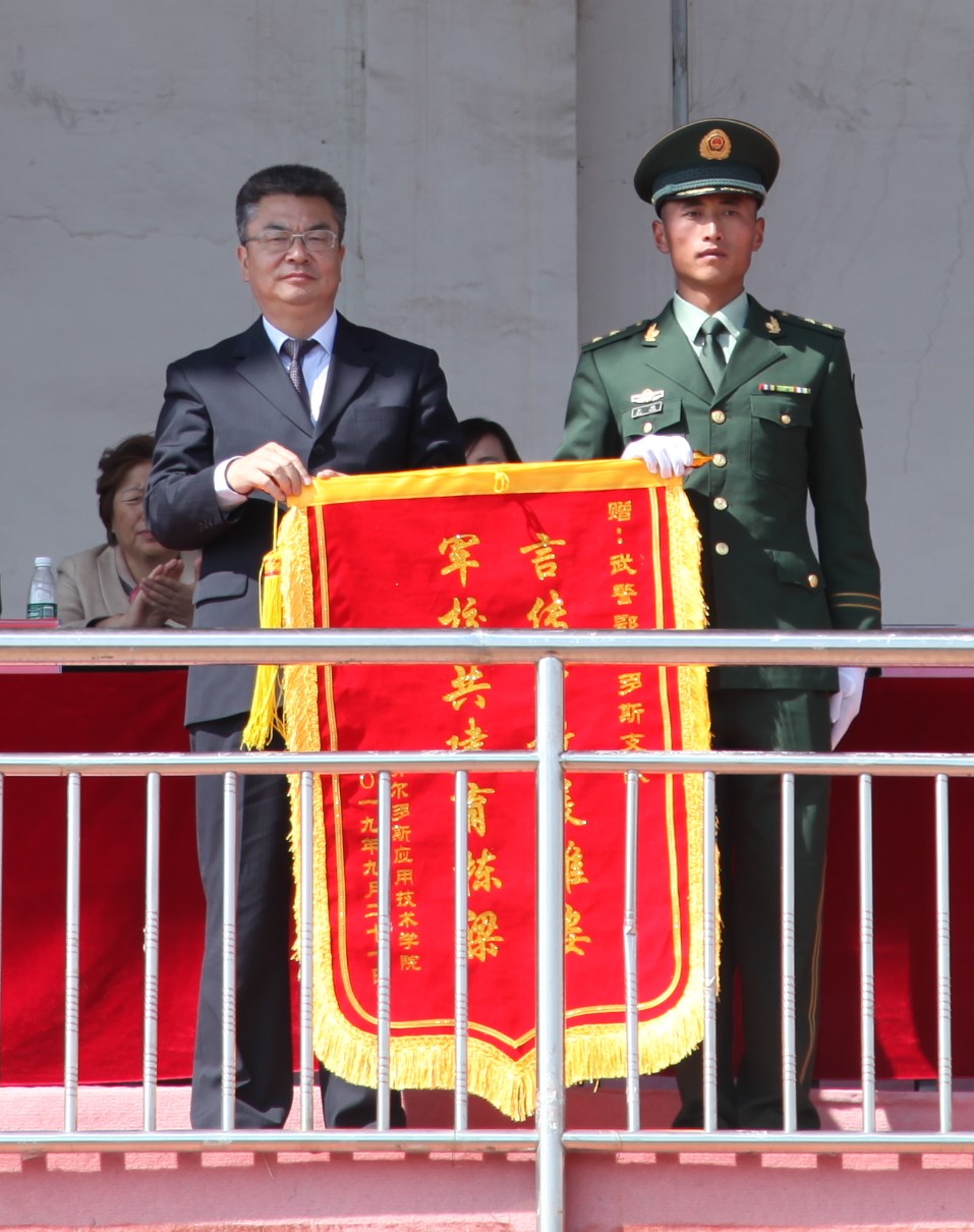 學院黨委書記侯晨曦向承訓部隊贈送了錦旗,表達了學院對承訓部隊誠摯的謝意。