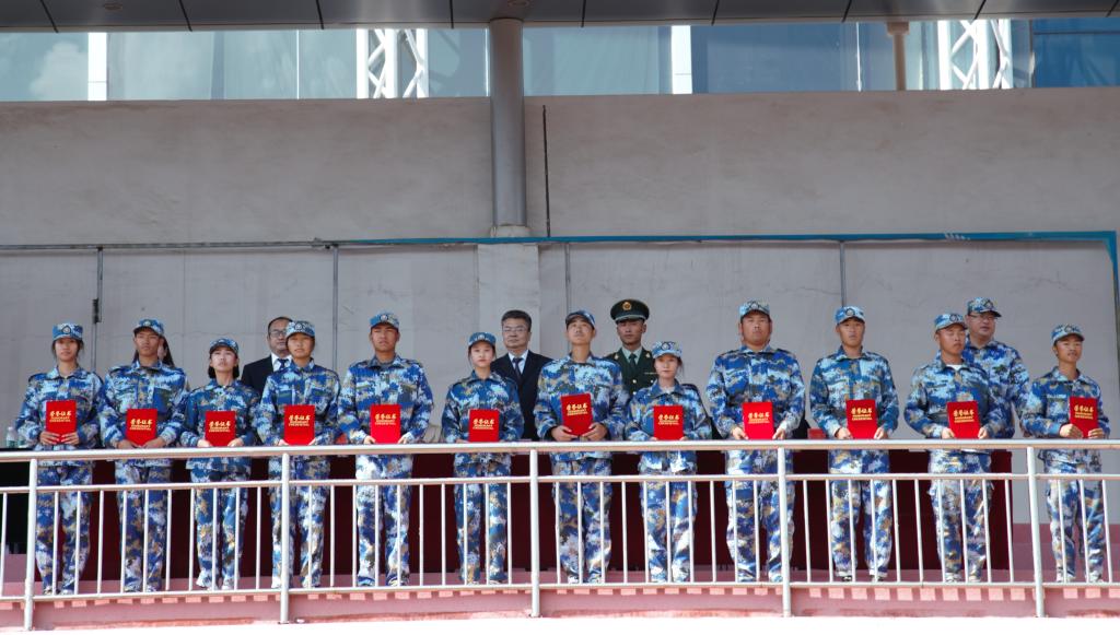 軍訓團政委、學生工作處副處長李智軍宣讀《鄂爾多斯應用技術學院關于表彰2019級新生軍訓先進集體和優秀個人的決定》,授予大飛機學院等3個系為軍訓“先進集體”;2號樓103宿舍等40間宿舍為軍訓“標兵宿舍”;李松等55名學生為軍訓“優秀標兵”;朱超等11名教官為“優秀教官”,王昆等4名教師為“優秀指導員”;宣讀了軍訓會操比賽獲獎名單。學院領導為獲表彰的軍訓先進集體和優秀個人頒發了獎牌和榮譽證書。
