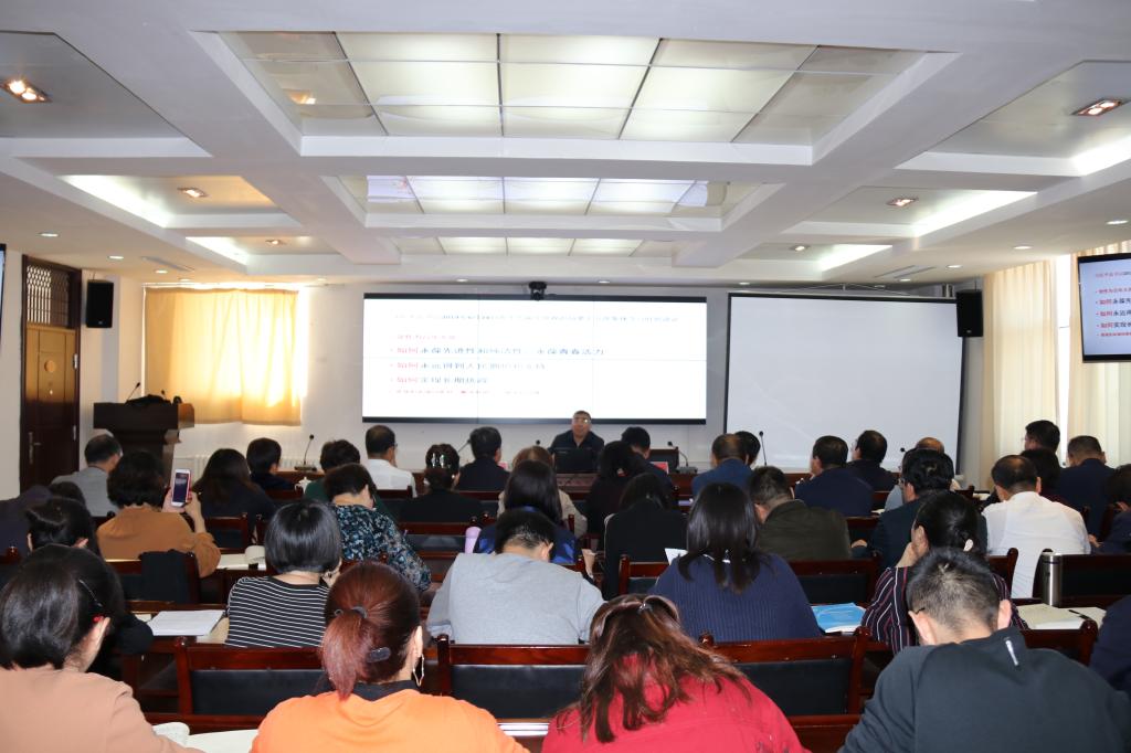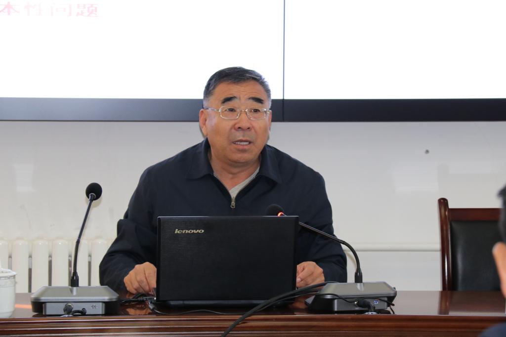 為進一步推進“不忘初心、牢記使命”主題教育深入開展,促進學習教育不斷往深里走、往心里走、往實里走,9月29日上午9:00,我院主題教育領導小組辦公室在行政樓501會議室組織召開主題教育專題輔導講座,邀請鄂爾多斯市委黨校奇海林教授作專題輔導,學院科級以上干部、馬克思主義教學部全體教師共計60余人聆聽講座。學院黨委副書記秦聞蘋主持本次講座。