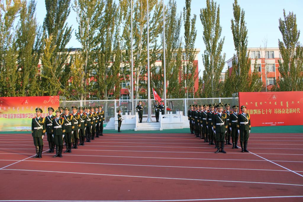 為深入學習貫徹黨的十九大關于加強全民國防教育的決策部署,全面貫徹全國教育大會精神,引領國防教育創(chuàng)新發(fā)展,全面激發(fā)學生愛國主義熱情,推動形成關心國家、熱愛國家、建設國家、保衛(wèi)國家的思想共識和自覺行動,以飽滿的熱情為新中國成立70周年獻禮,2019年10月22日上午,由內(nèi)蒙古自治區(qū)教育廳主辦,內(nèi)蒙古師范大學承辦的全區(qū)學校國旗護衛(wèi)隊高校組交流展示活動在內(nèi)蒙古師范大學(盛樂校區(qū))舉行。我院國旗護衛(wèi)隊與入圍的15支高校國旗護衛(wèi)隊進行了激烈的角逐。隨著國歌響起時,國旗護衛(wèi)隊在行進中同時完成立正、轉(zhuǎn)頭、敬禮、齊步、正步、托槍等動作,一連串動作的速度、幅度、節(jié)奏和轉(zhuǎn)換整齊劃一、穩(wěn)健有力,橫看、縱看、斜看都是“一條線”,當國旗朝天際拋起的那一刻,贏得了觀眾熱烈的掌聲,充分展示了鄂應院國旗護衛(wèi)隊的風采,最后榮獲大賽團體三等獎。