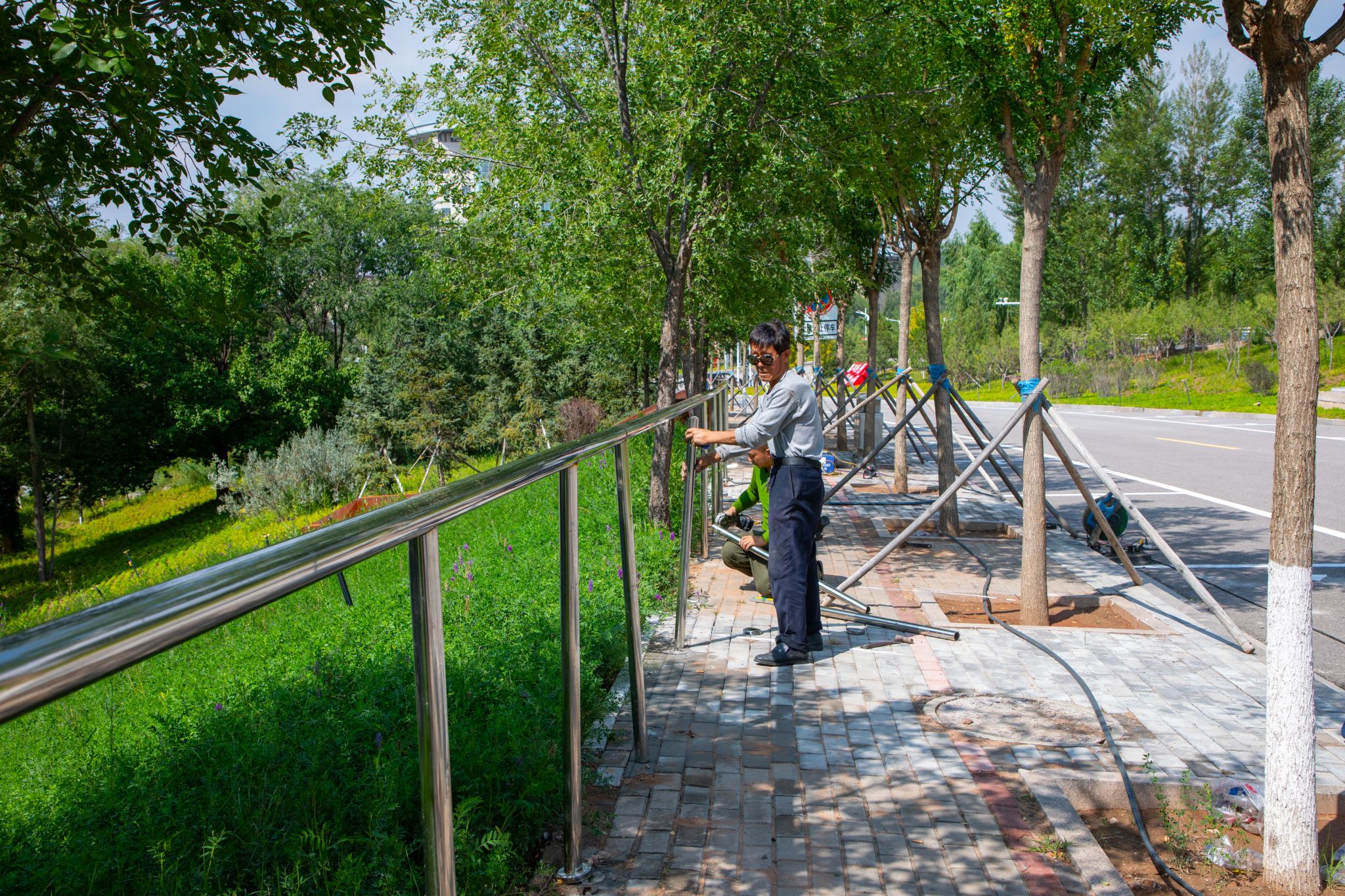 行走在校園背面,一排排結實美觀的坡道防護欄也嶄新亮相,消除了雨天路滑、摔倒跌落的安全隱患,為師生安全出行多了一份保障。