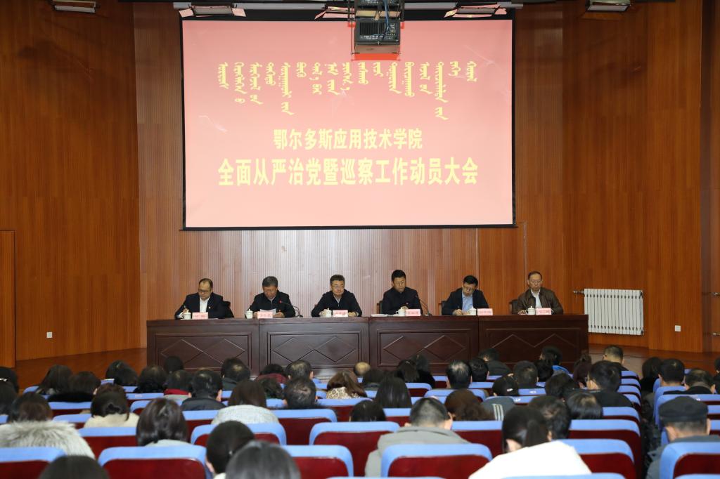 李少東講話指出,2019年學院紀委以習近平新時代中國特色社會主義思想為指導,深入貫徹中央紀委十九屆三次和自治區紀委十屆五次全會精神,協助學院黨委全面貫徹黨的教育方針,落實立德樹人根本任務,努力推動學院高質量發展,為寫好新時代鄂爾多斯應用技術學院的“奮進之筆”提供了堅強紀律保障。一是圍繞中心工作,合理謀篇布局;二是突出監督責任,加強政治建設;三是緊盯關鍵環節,延伸監督觸角;四是壓實責任落實,著力整章建制。要清醒認識高校黨風廉政建設和反腐敗斗爭所面臨的形勢依然嚴峻復雜,全面從嚴治黨的任務任重而道遠。
