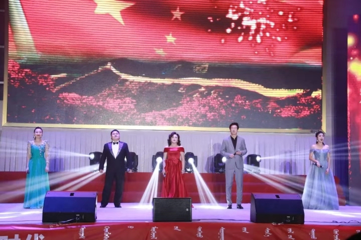 在新年的祝福聲中,馬頭琴樂團帶來的合奏《天邊》拉開了晚會的序幕。歌曲《我們的新時代》唱響新時代新期待;合奏《喬家大院》宛轉悠揚,奏出了人民純樸民風;舞蹈《馬背交響》,舞出馬背民族歡樂祥和的生活場景;四胡獨奏《清泉》、長調《班禪廟》,展現了蒙古族音樂的獨特魅力;歌曲《水調歌頭·明月幾時有》,以獨特的方式再現了詩人蘇軾對人生的終極思考。舞蹈《鄂爾多斯舞》、民樂《鄂爾多斯民歌》、笛子獨奏《揚鞭騎馬運糧忙》,彰顯出草原兒女堅韌不拔的精神和創造幸福生活的美好愿望;歌曲《白云的故鄉》唱出了游子對家鄉的眷戀之情。最后一首合唱《我愛你、中國》唱響華夏宏圖,抒發了師生對祖國無限的熱愛之情,晚會在合唱聲中圓滿落幕。