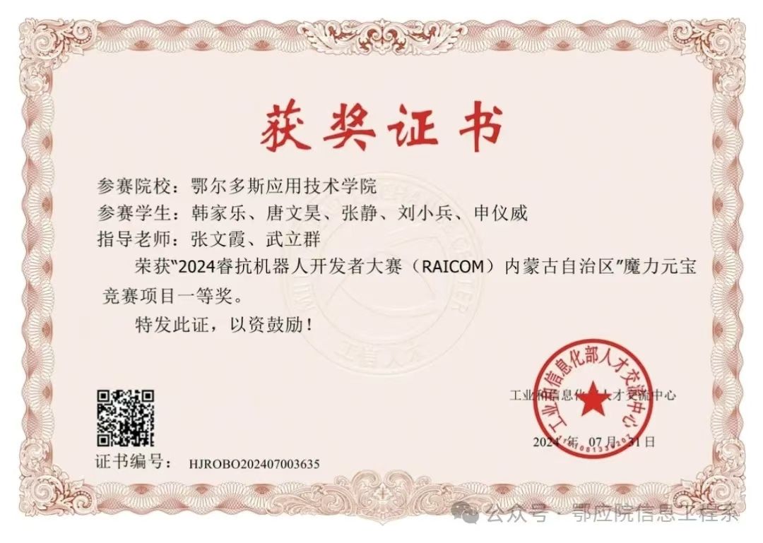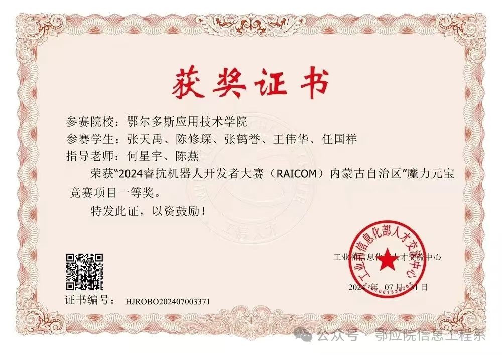 日前,2024睿抗機器人開發者大賽(RAICOM)全國總決賽在杭州未來科技城學術交流中心盛大舉行。我校信息工程系榮獲全國一等獎1項、三等獎1項,并在省賽中包攬2項一等獎,實現了我校在該項賽事中的歷史性突破。