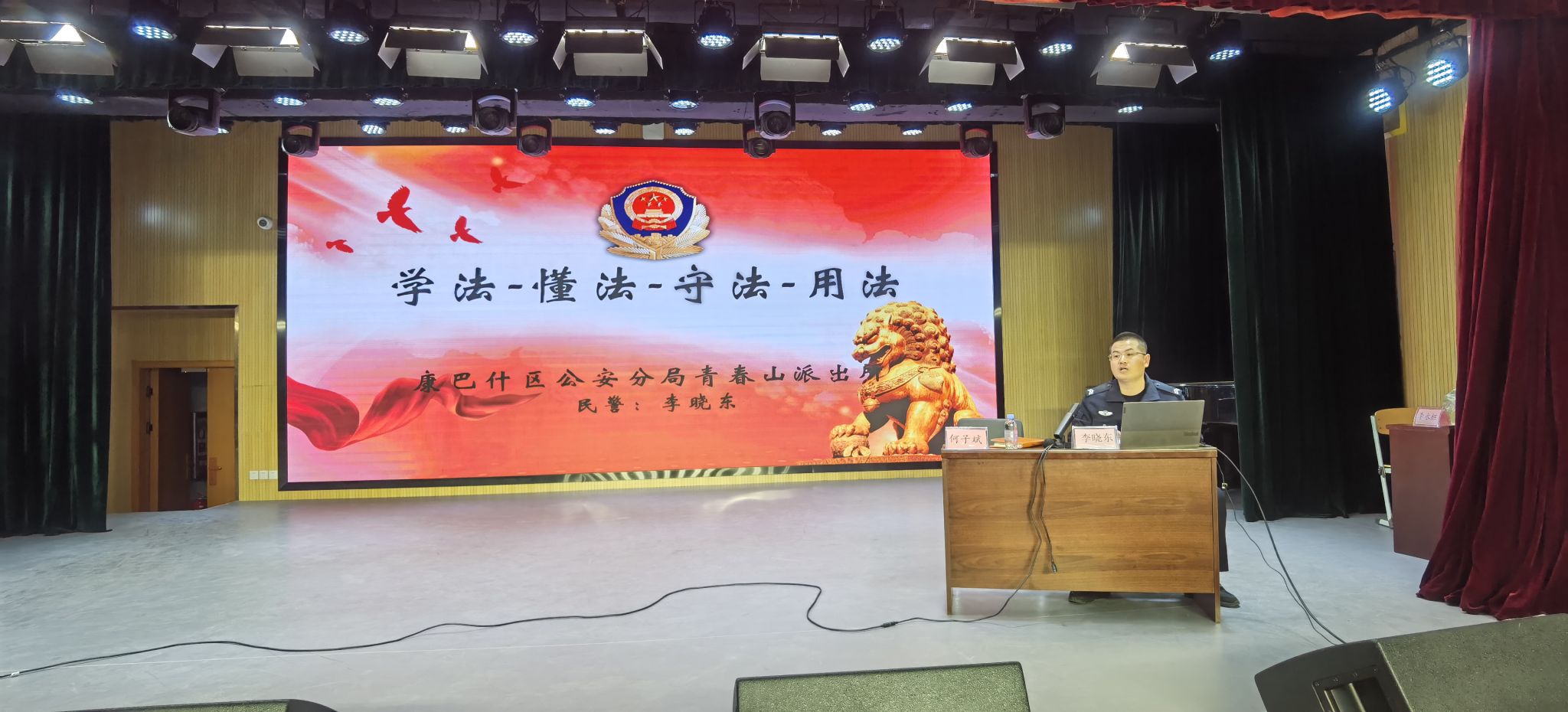李曉東警官結合身邊發生的電信詐騙及偽造、變賣證件等的真實案例,倡導同學們要學法、知法、懂法、用法、守法,遠離電信詐騙等危害,避免發生因投機取巧而承擔嚴重法律后果的悲劇。