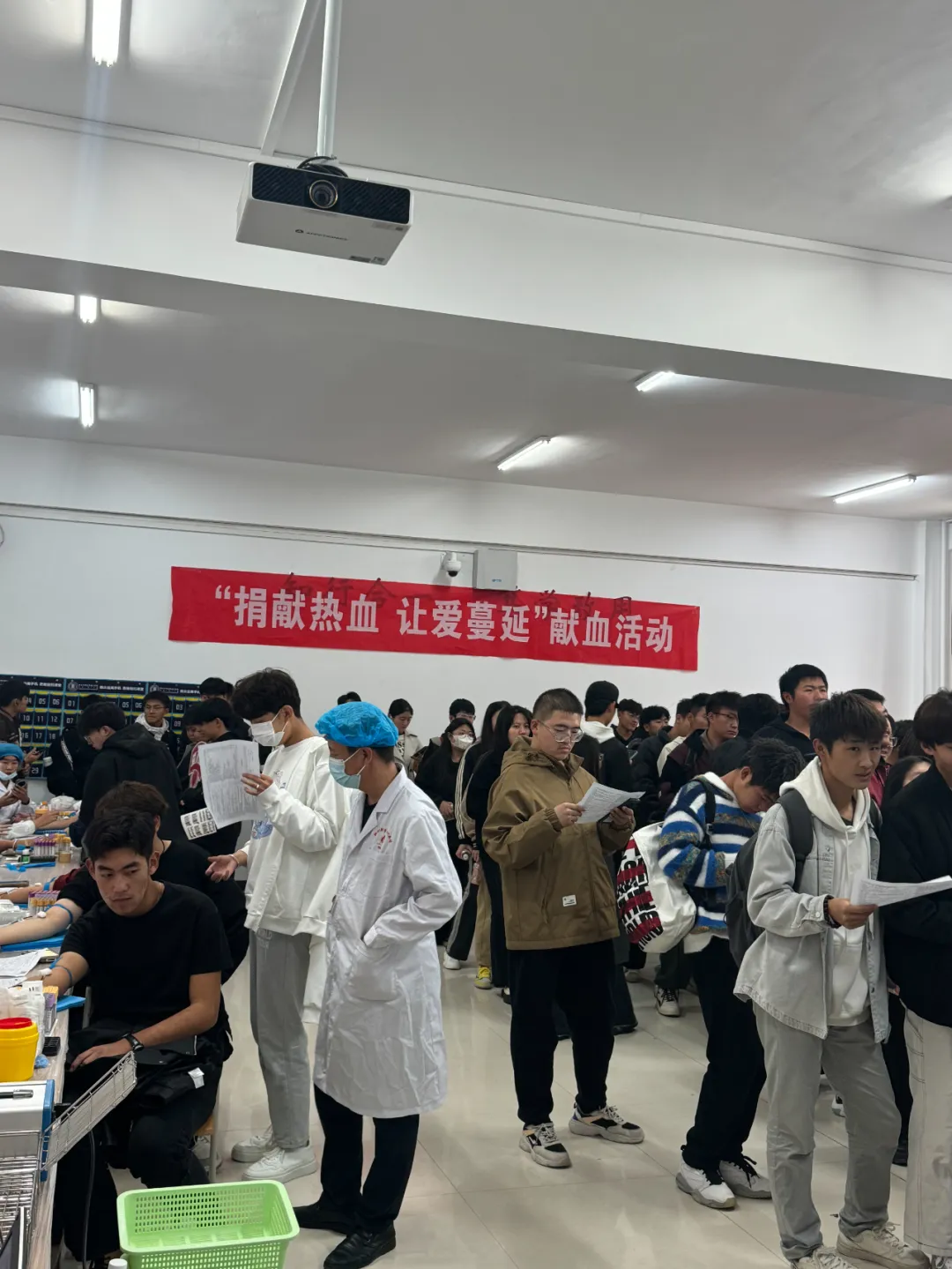 活動當天雖然氣溫較低,但絲毫沒有影響鄂小鷹獻愛心的熱情,同學們們在課余時間來到康巴什校區勤學樓101,在團委、學校紅十字會應急救援隊指引下,有序填表、測量血壓、化驗血型、抽血獻血。在獻血隊伍中,有很多初次獻血的萌新,也有多次獻血的“熟面孔”,獻愛心的隊伍逐漸壯大。
