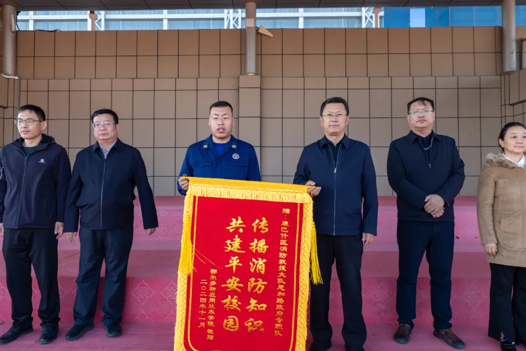 演練總結大會上,秦聞蘋向康巴什區消防救援大隊恩和路政府專職隊贈送錦旗。
