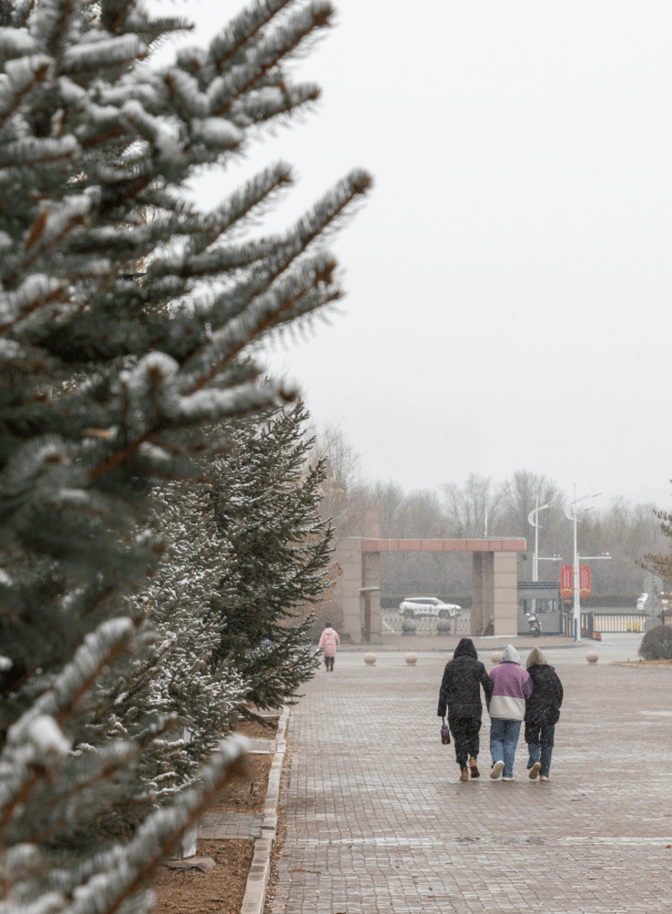 鄂小鷹和雪人一起構成了冬日校園最美的畫面