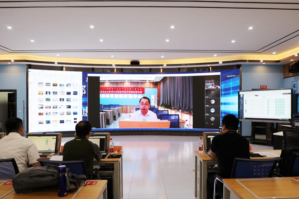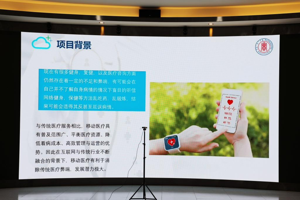 受疫情影響,本次決賽采取現場播放路演視頻和在線答辯、現場評分的方式進行。各項目組提前錄制了VCR視頻和PPT路演展示視頻,比賽現場根據賽前電子抽簽確定的比賽順序播放參賽視頻,評委專家現場提問,參賽選手在線答辯,專家現場對項目評分,并給予點評。