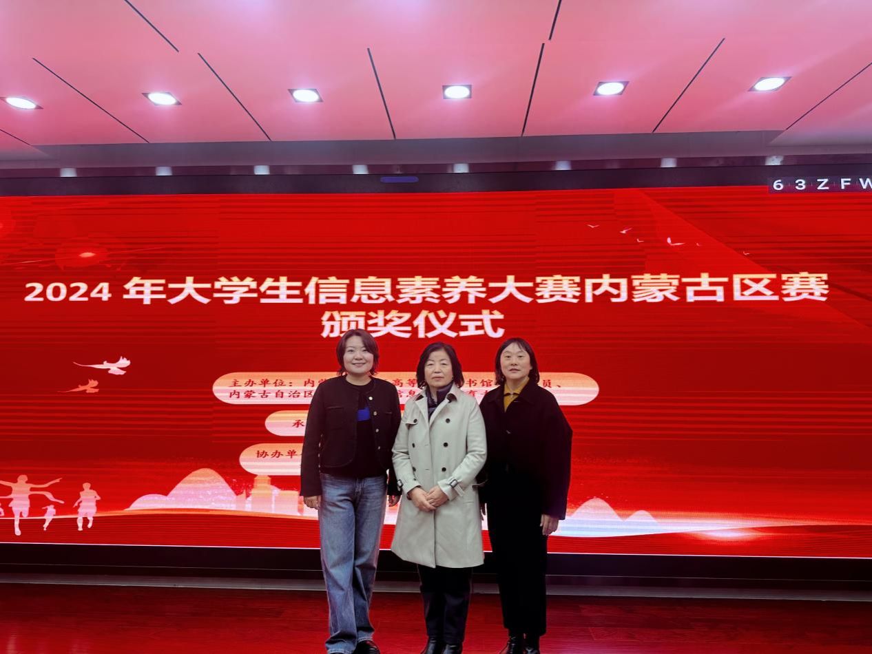 11月15日,由內蒙古自治區高等學校圖書館工作委員會、內蒙古自治區圖書館學會信息素養教育專業委員會主辦的2024年大學生信息素養大賽內蒙古區賽頒獎儀式在內蒙古財經大學圖書館舉辦,我校學生付夢穎、劉慧、段盈帆榮獲本科組優勝獎,郝美霞、烏蘭嬋娜榮獲本科組“優秀指導教師”稱號。