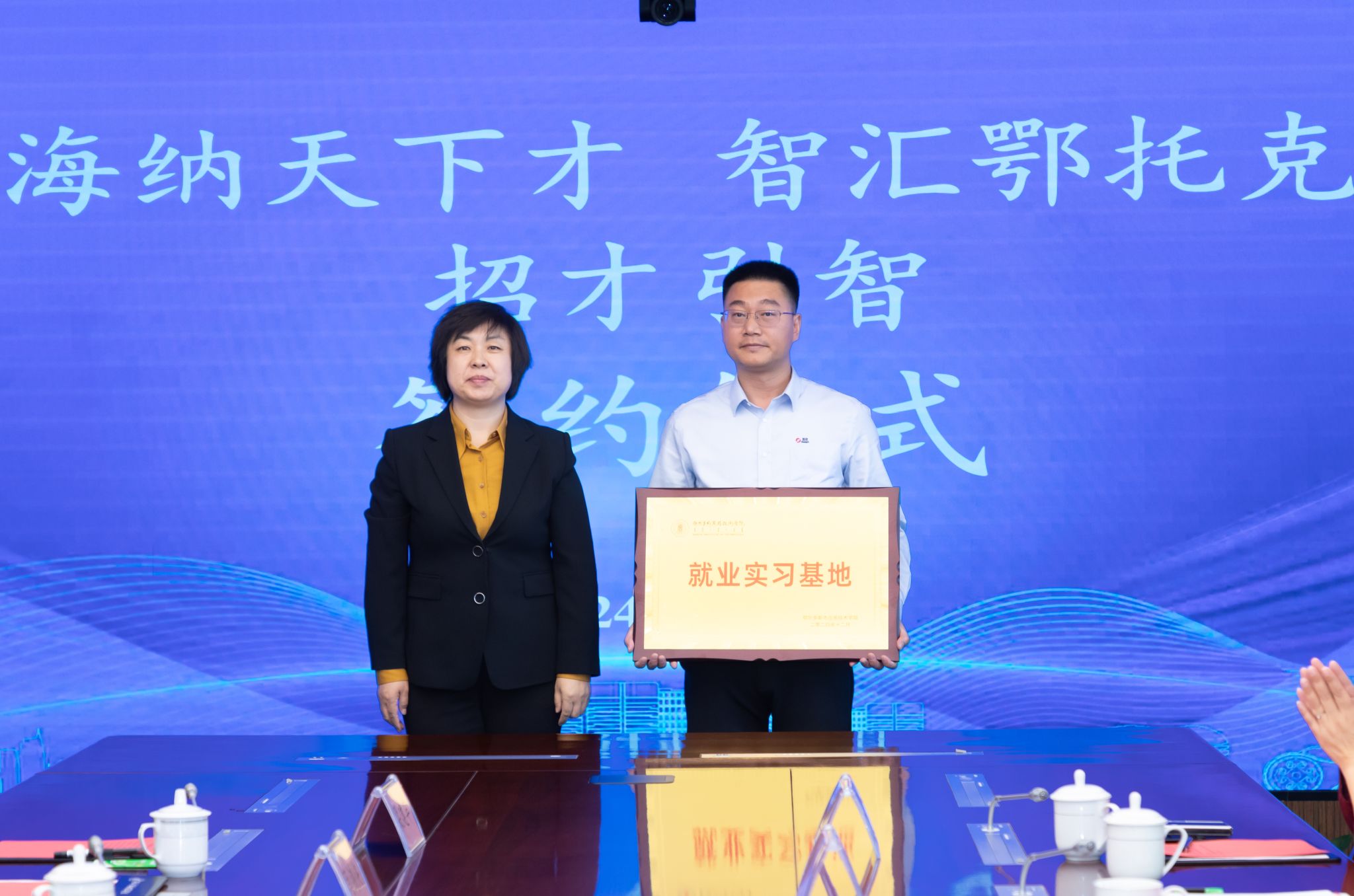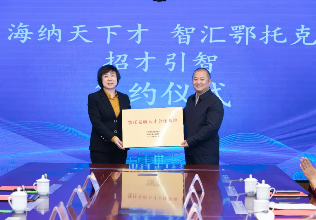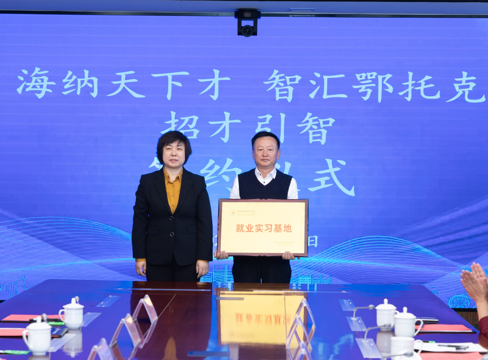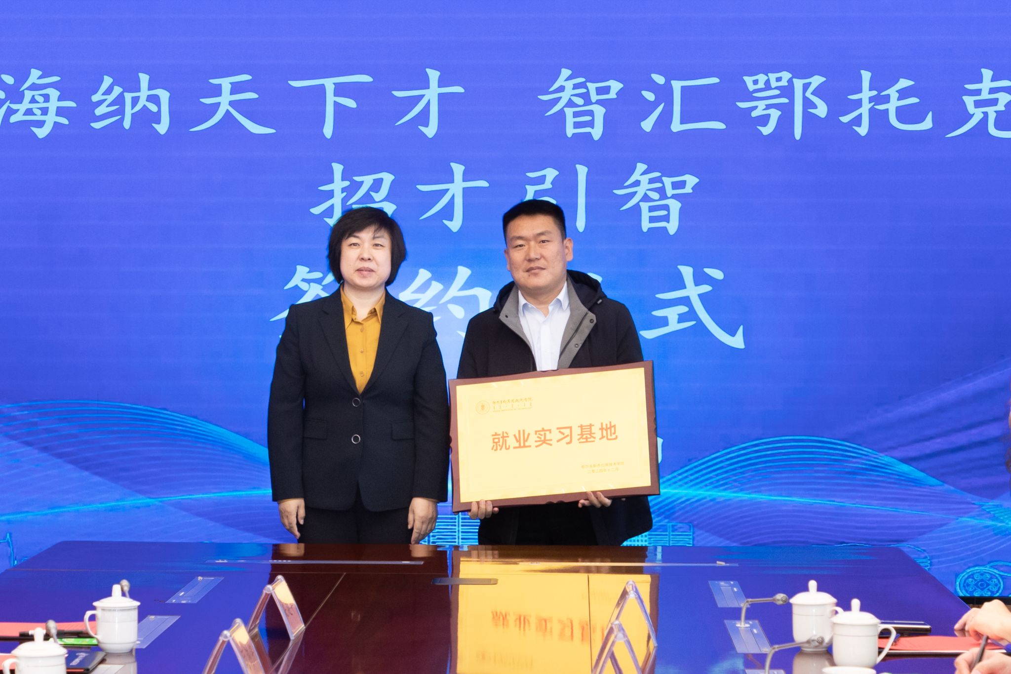 鄂托克旗委政府授予我校“鄂托克人才合作基地”牌匾。