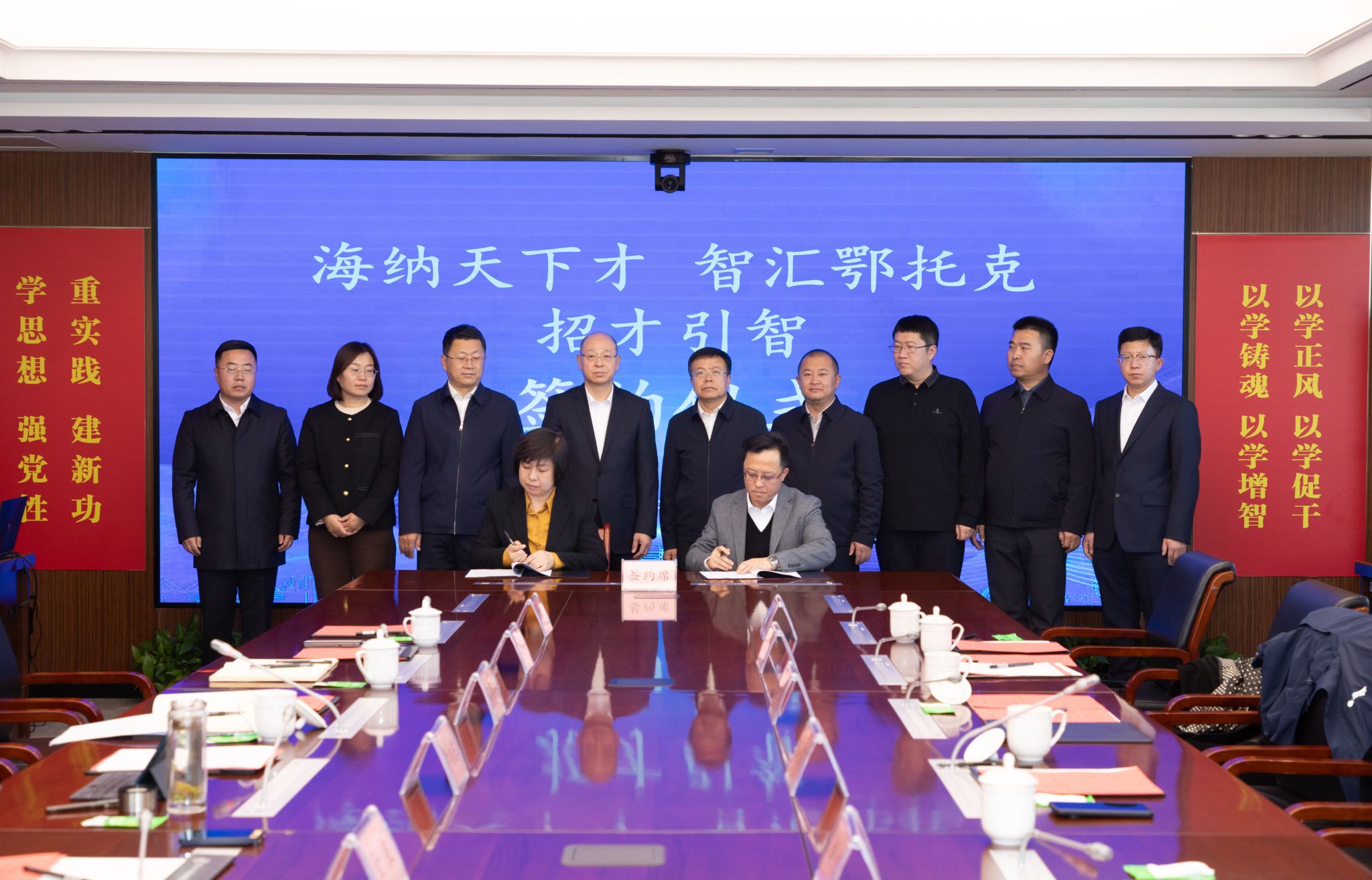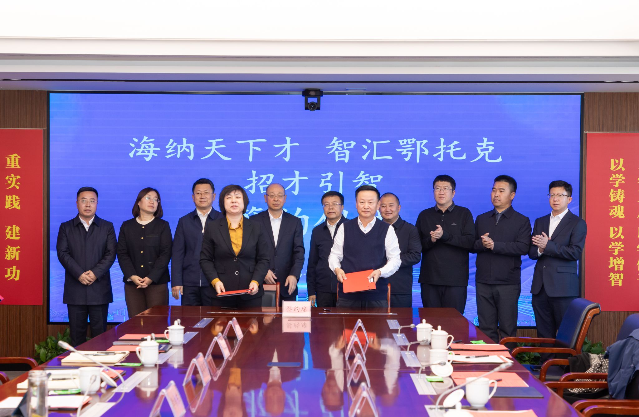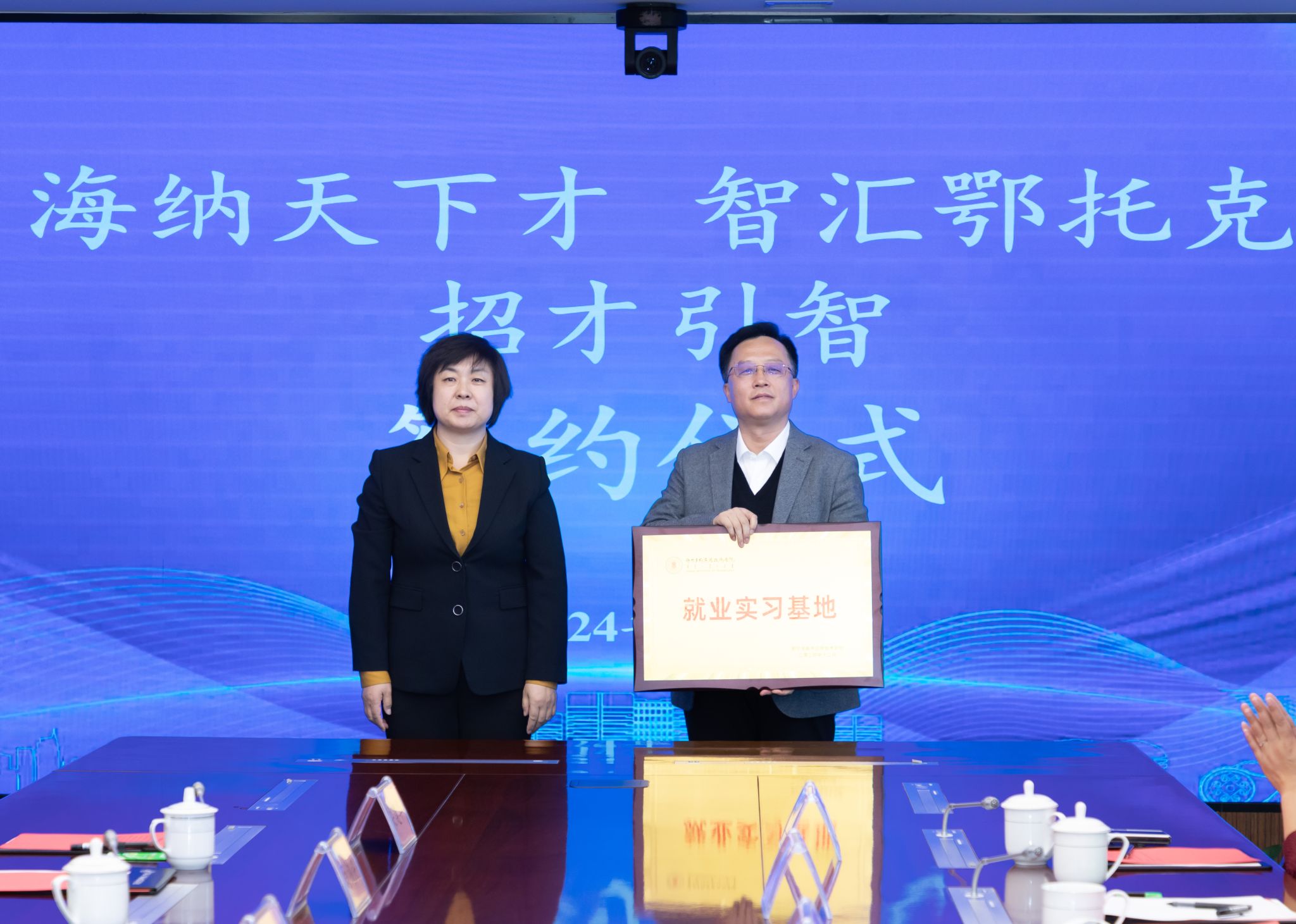 鄂托克旗委政府授予我校“鄂托克人才合作基地”牌匾。