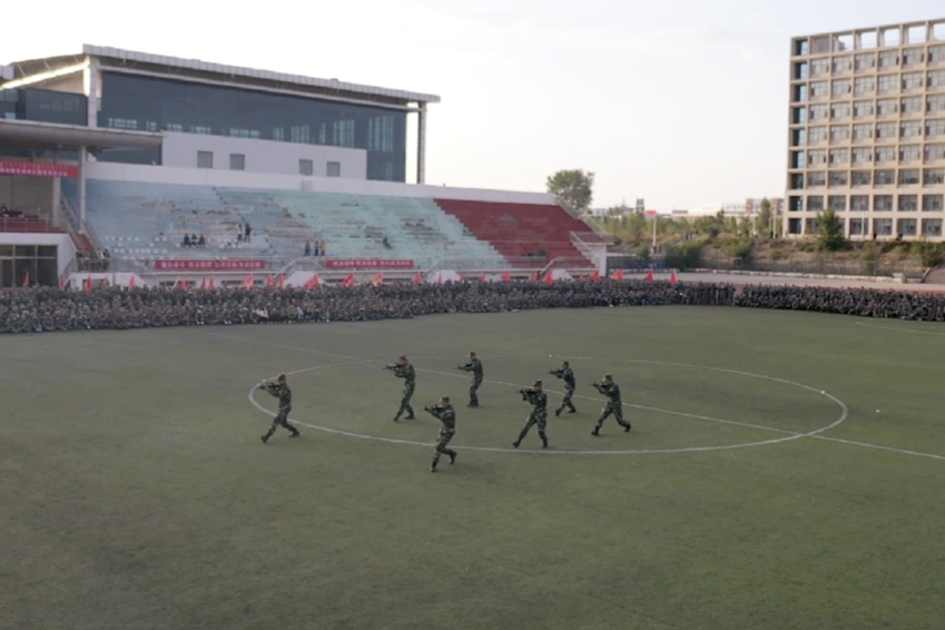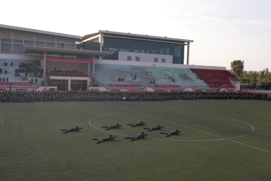 威武的身姿,矯健的步伐,整齊劃一的方隊,嘹亮的口號,整潔的迷彩服和活力四射的朝氣,正是今年我院新生軍訓最真實的顯照。隨著指揮員的一聲號令,2000余名新生組成的10個連隊39個班,邁著矯健的步伐、喊著響亮的口號,意氣風發、精神抖擻地通過主席臺,接受學院領導及部隊領導的檢閱。分列式后,全體參訓學生進行了軍訓會操比賽,各個班表演了齊步走與轉體、下蹲與起立、跨立與敬禮,同時還進行了軍營歌曲小合唱表演等。三周的軍訓雖然短暫,但同學們在軍訓期間展現的吃苦、頑強的作風和昂揚向上的精神風貌,為本次軍訓交上了一份滿意的答卷。