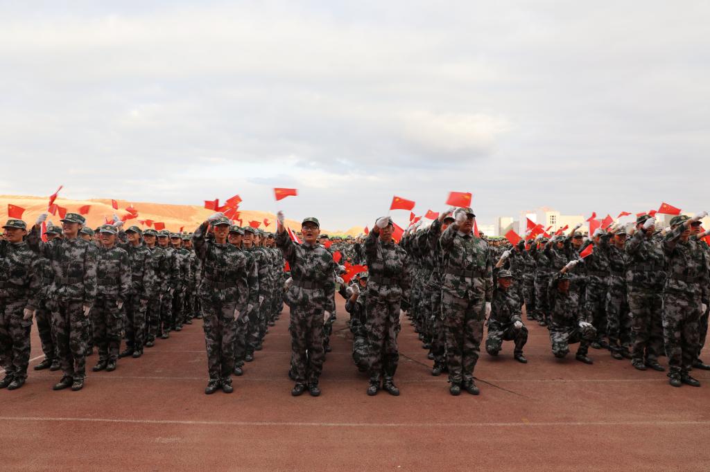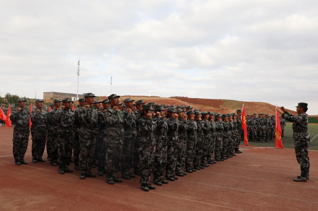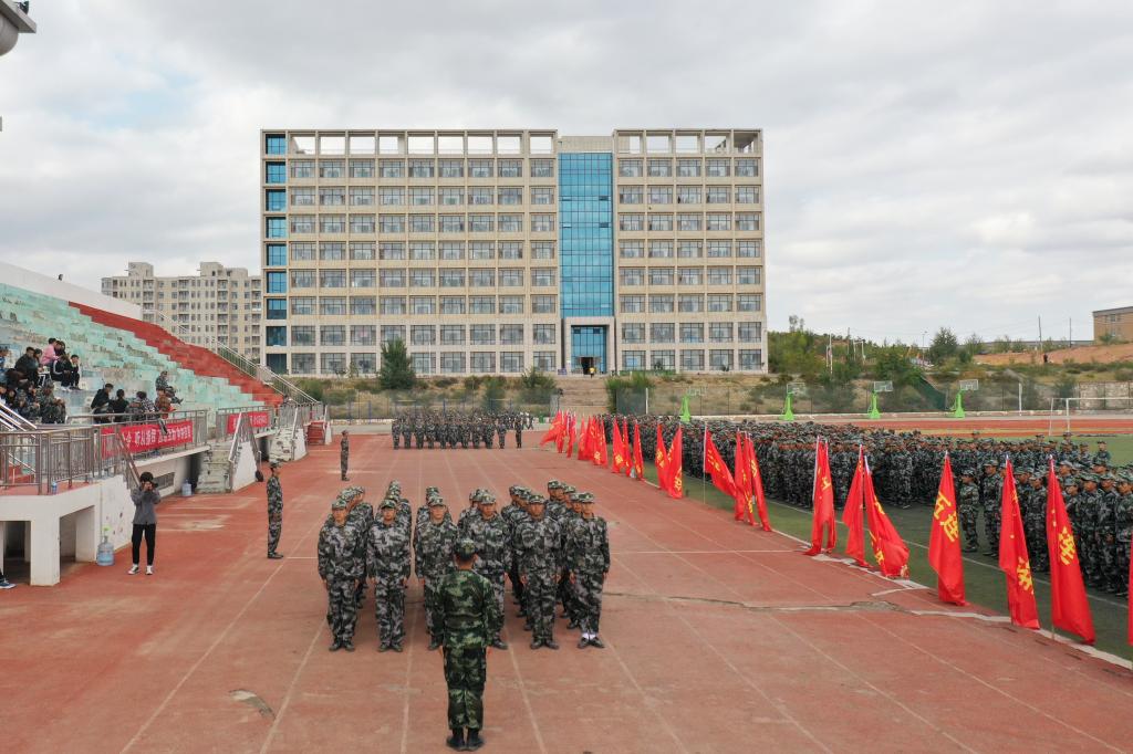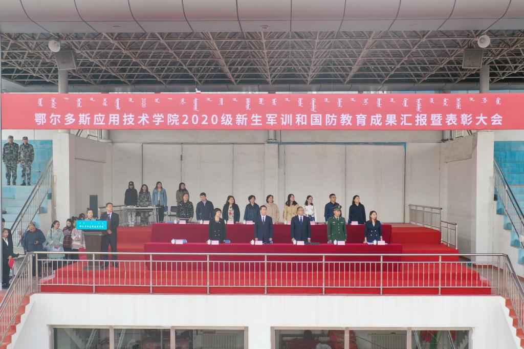 9月29日下午,我院2020級新生軍訓和國防教育成果匯報暨表彰大會在康巴什校區體育場隆重舉行。學院黨委副書記、院長鐵勇,黨委委員、副院長何鵬、金良,武警鄂爾多斯支隊執勤一大隊大隊長王永剛出席大會,參加大會的還有承擔我院軍訓任務的武警鄂爾多斯支隊各位教官,學院各部門、各單位負責人,教師代表以及2020級2000余名新生。大會由軍訓團政委、學生工作處副處長李智軍主持。