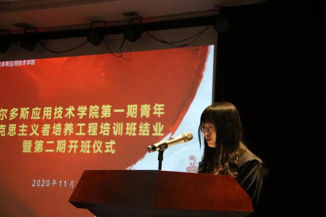 隨后學院團委書記劉靜萍宣讀《關(guān)于鄂爾多斯用技術(shù)學院第二期青年馬克思主義者培養(yǎng)工程培訓班開班的決定》。