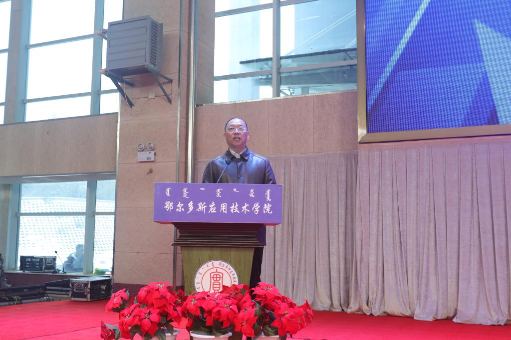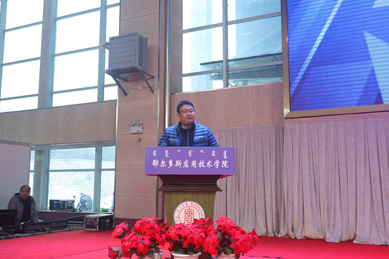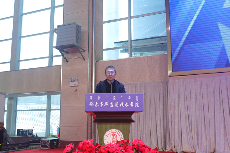 鄂爾多斯市人力資源公共服務中心張永恒副主任發言,他代表市人社局向本次招聘會的舉辦表示祝賀,希望廣大畢業生能找到理想的工作,用人單位能招聘到優秀的畢業生,市人社局與學院合力推動黨中央、國務院關于大學畢業生就業各項決策部署的落實。
