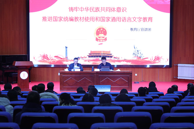 尤俊成在總結講話中指出,本次專題宣講使我院廣大教職員工對習近平總書記關于民族工作的重要論述,對新時代黨中央關于民族工作的大政方針,對國家推廣普及國家通用語言文字、推行使用國家統編教材的政策以及相關法律有了更加系統深入的認識,為我院以鑄牢中華民族共同體意識為主線,深化民族團結進步教育,加強和改進民族工作,推進學校事業高質量發展夯實了思想基礎。全院干部和教職員工要全方位對標對表中央和自治區黨委的要求,在全面準確把握黨和國家關于民族工作方針政策的基礎上,進一步梳理查擺問題,堅決糾正錯誤偏差,不折不扣地把推進國家通用語言文字和推廣使用國家統編教材的工作落實到位,不斷提高做好民族工作的能力,把鑄牢中華民族共同體意識這一主線落實到學院教育教學工作的全方位,體現在人才培養的各方面,貫穿于學院思想政治工作的全過程。教育引導廣大師生把思想和行動統一到黨中央和自治區黨委的決策部署上來,推動黨的民族政策在校園落地生根,讓民族團結進步之花常開長盛。