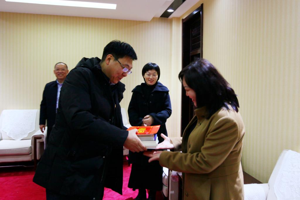 2月1日下午,農歷春節來臨前夕,鄂爾多斯市委組織部副部長謝宇一行帶著鄂爾多斯市委和政府的親切關懷與深情厚意,來到我院,對學院高層次人才代表:藝術系李紅梅教授、教務處王靜教授、數學與計算機工程系董悅麗教授、管理系劉海英教授和大飛機學院夏前錦副教授進行了親切慰問和新春祝福,為他們送上了慰問金、慰問信和學習書籍,并進行了親切交談,表達了市人才工作領導小組對我院專家學者的關心與厚愛。學院黨委書記尤俊成、黨委副書記、院長鐵勇和黨委委員、副院長劉建出席,人事處負責人陪同。