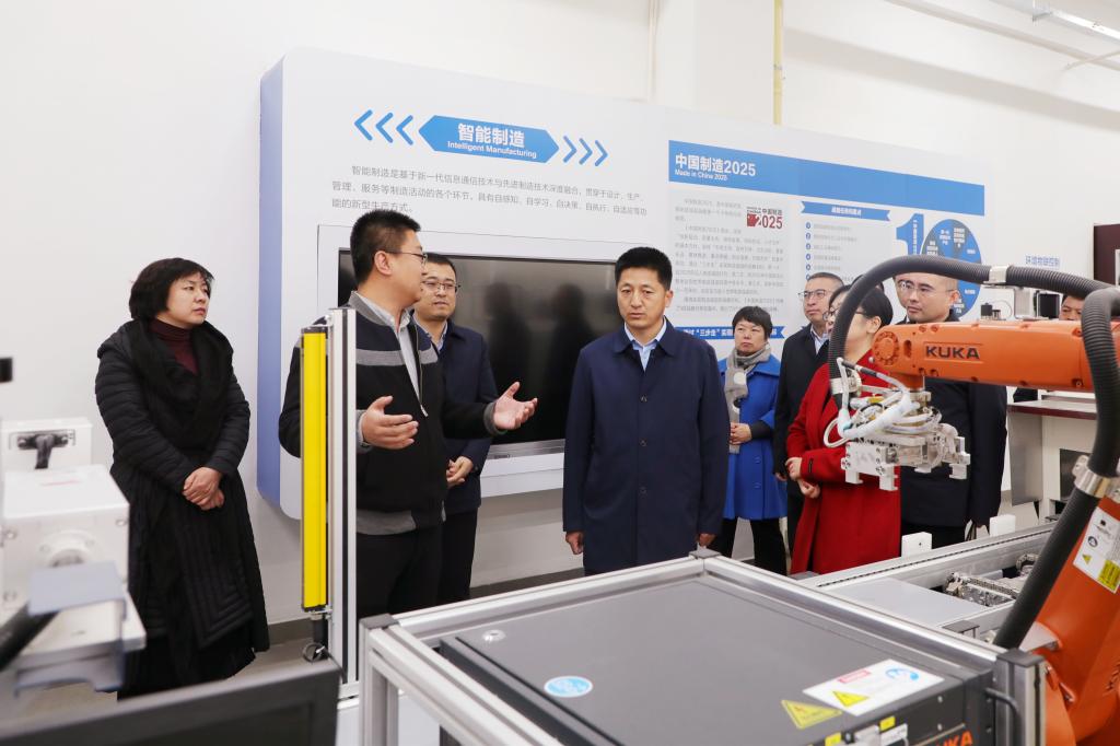 調研組一行在學院黨委委員、副院長金良、科技處處長田繼蘭等的陪同下實地考察了鄂爾多斯應用技術學院礦山地質與環境院士專家工作站、云·智工坊眾創空間、智能制造中心、化學實驗室,深入了解學??蒲衅脚_建設情況,實地調研期間,邊東對學院產教融合、校企合作的辦學思路和優越的辦學條件和優秀的師資力量表示贊同,希望下一步充分發揮各自優勢,形成政產學研合力,促進地方經濟、與人才培養的雙贏發展態勢。
