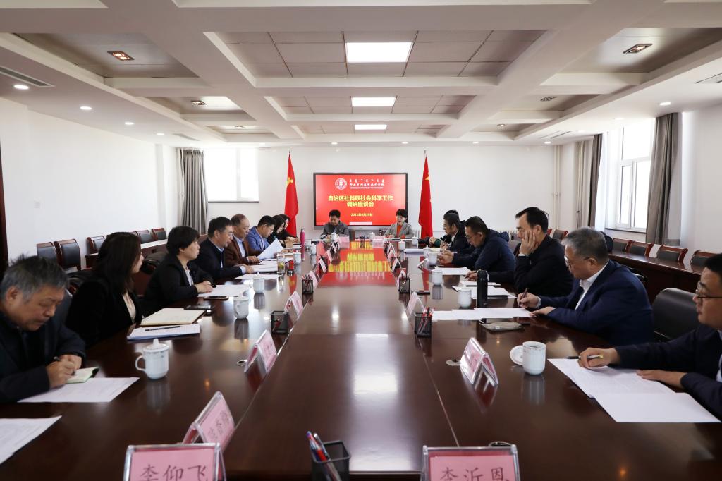 4月29日上午,自治區社科聯黨組書記、主席高慧廣一行在鄂爾多斯市社科聯黨組書記 、主席王云等陪同下來我院調研指導社科聯的工作。學院黨委書記尤俊成,黨委委員、副院長金良、劉建及學院社科聯全體成員了參加座談交流。
