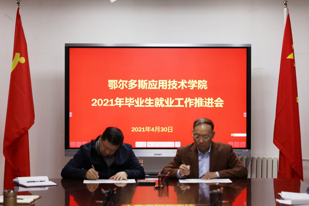 會議期間,劉建副院長代表學院與各系簽訂了“鄂爾多斯應用技術(shù)學院2021年就業(yè)工作目標管理任務書”。