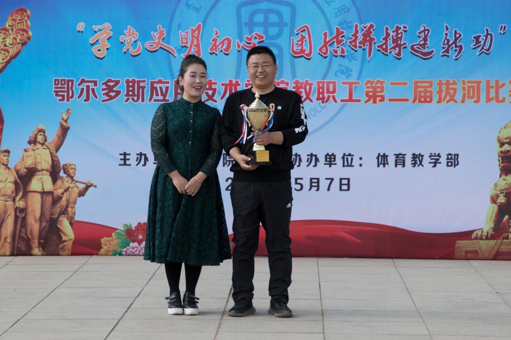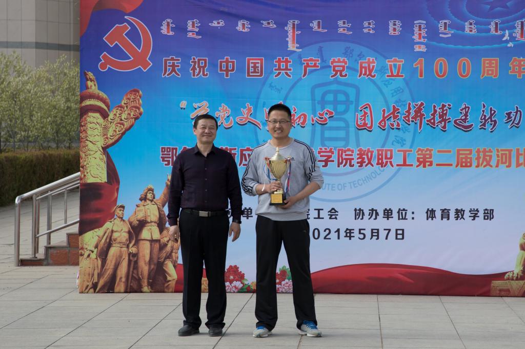 為慶祝中國共產黨成立100周年,深入貫徹習近平總書記關于“廣泛開展全民健身活動,加快推進體育強國建設”的重要指示精神,落實國家、自治區以及鄂爾多斯市關于開展全民健身活動的部署要求,促進我院教職工積極投身體育運動、提高健康水平、凝聚團隊精神,推進黨史學習教育不斷深入,學院工會以“學黨史明初心,團結拼搏建新功”為主題,5月8日下午,學院工會在知行廣場舉辦了教職工第二屆拔河比賽。學院黨委副書記秦聞蘋出席了開幕式,黨委委員、副院長、工會主席劉建致開幕詞,工會副主席、體育教學部主任王玉俠主持開幕儀式。