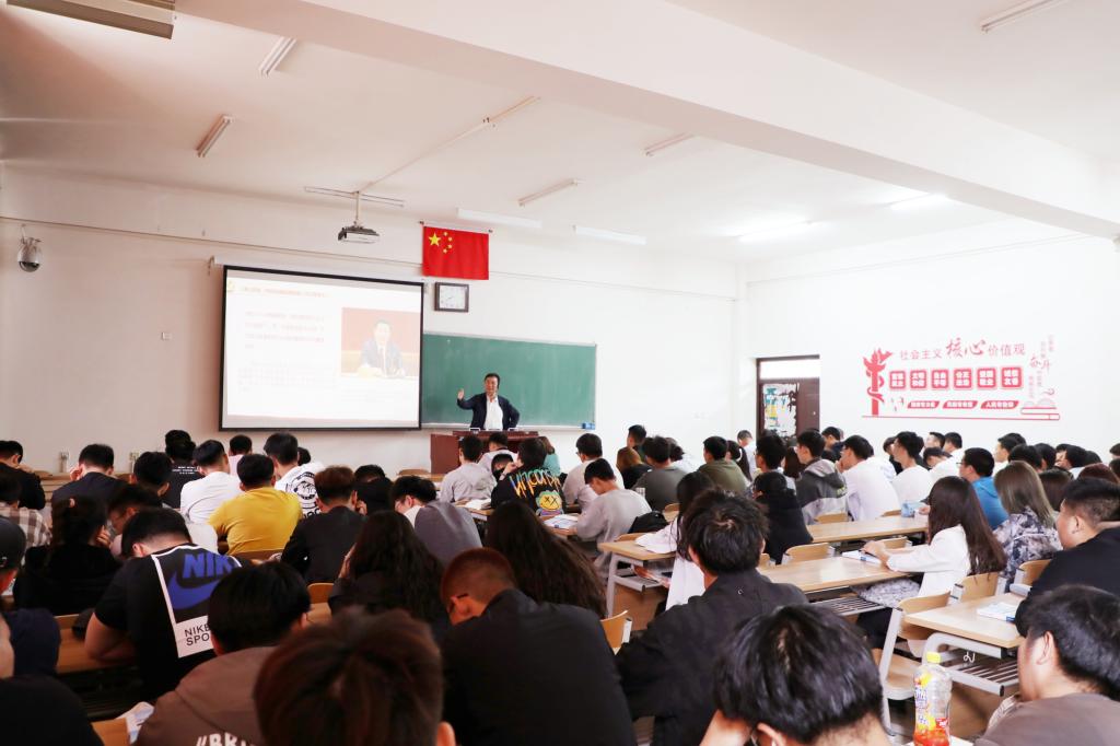 為了進一步貫徹落實中共中央、國務院《關于深化新時代學校思想政治理論課改革創新的若干意見》,6月4日上午,學院黨委書記尤俊成以《推進全面依法治國,繪就“中國之治”新藍圖》為主題,走進思政課堂,為廣大青年學生上了一堂深刻而生動的思政課。